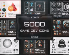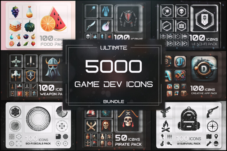 5000 Game Dev Icons Mega Bundle; Including Weapons, Characters, Buildings, and Environments; AI, JPG PNG & PSD Files
