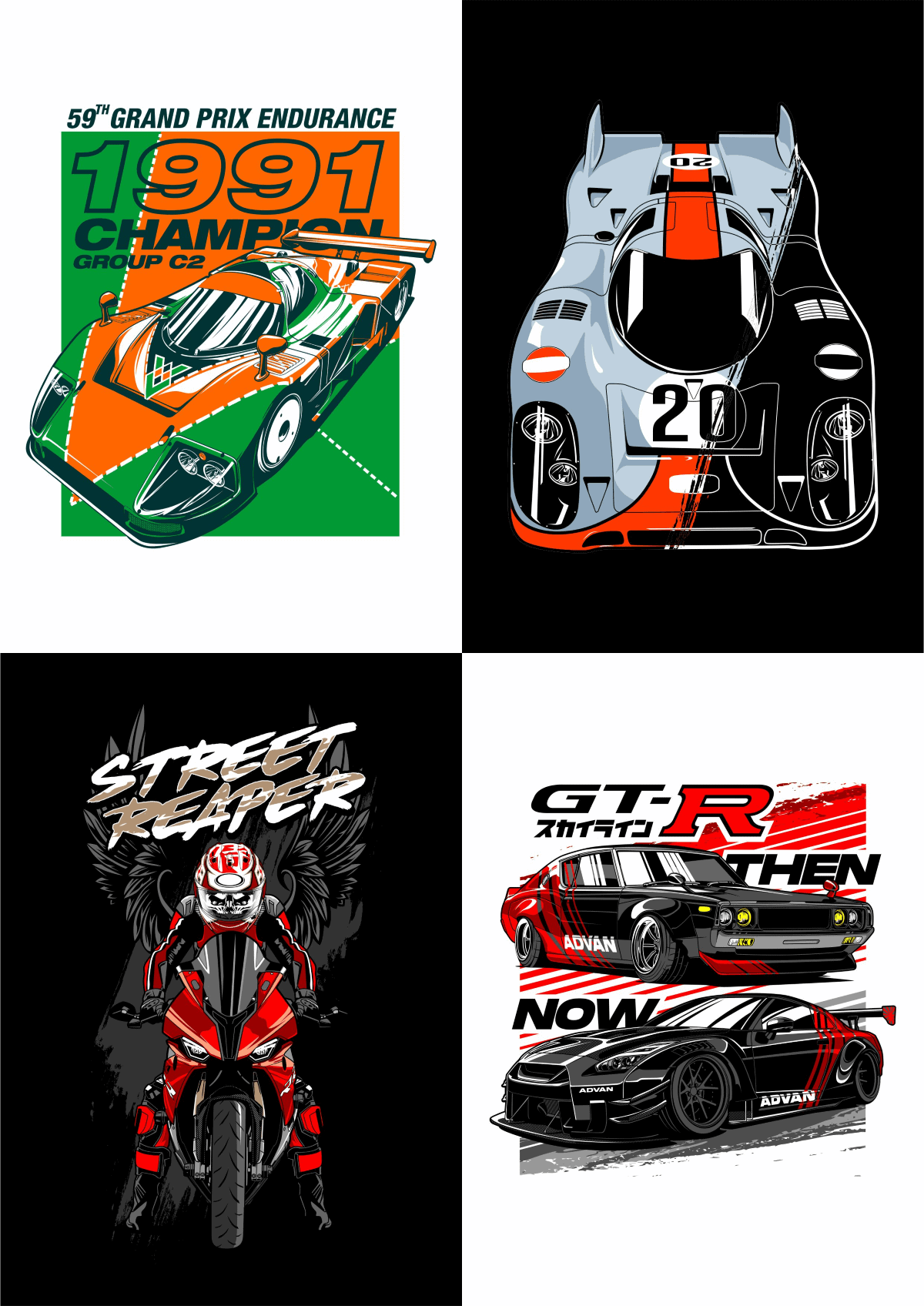 250 Car/Racing T-shirt Designs Pack, Ai & Transparent PNG Files (Updated May 2023)