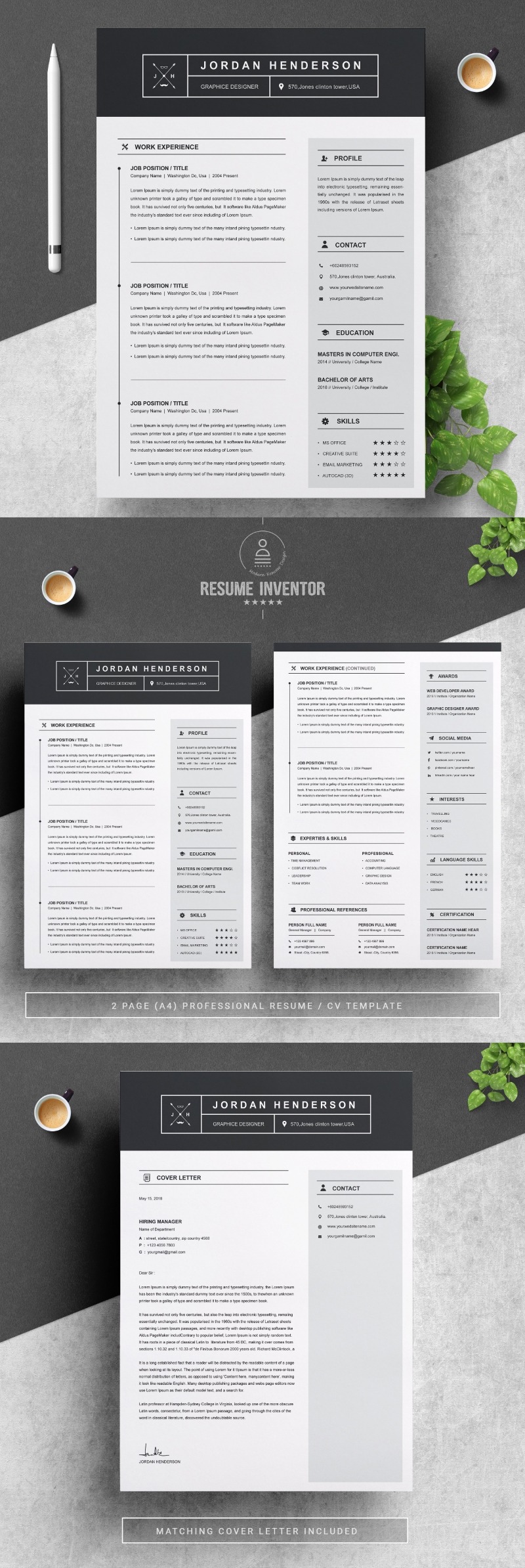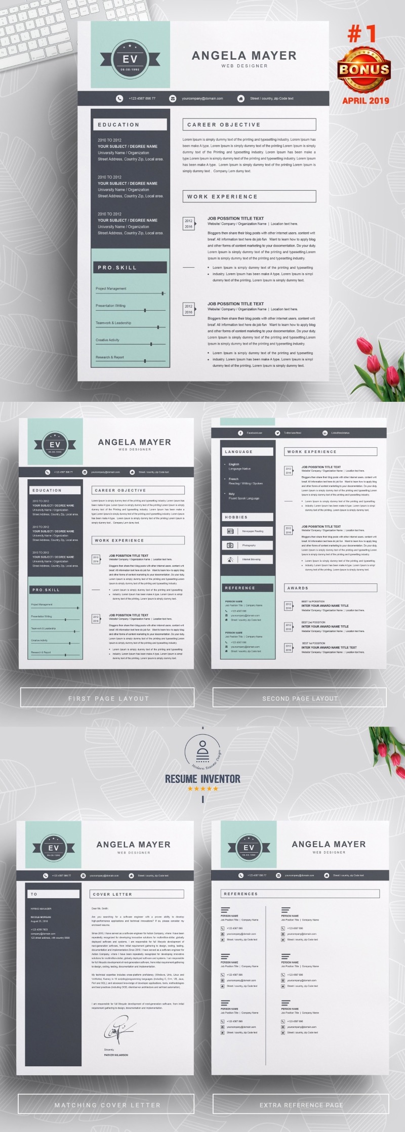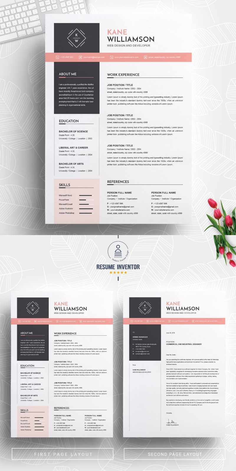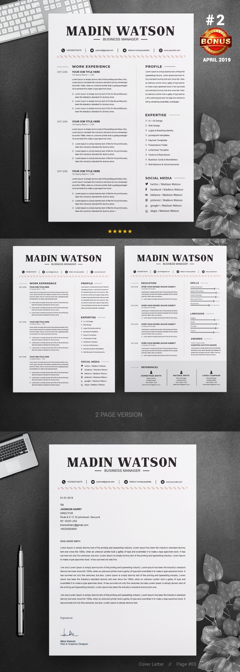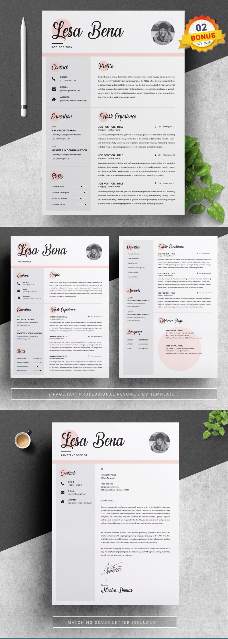 - Matching cover letter template for every CV template (can also use as a Thank You letter)