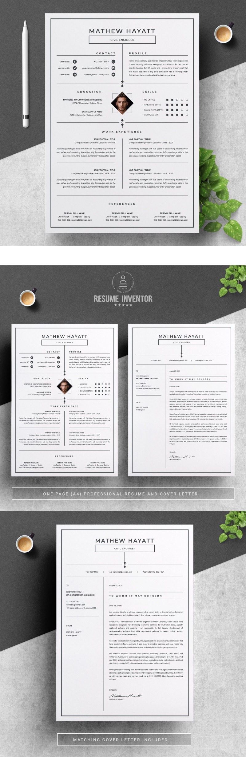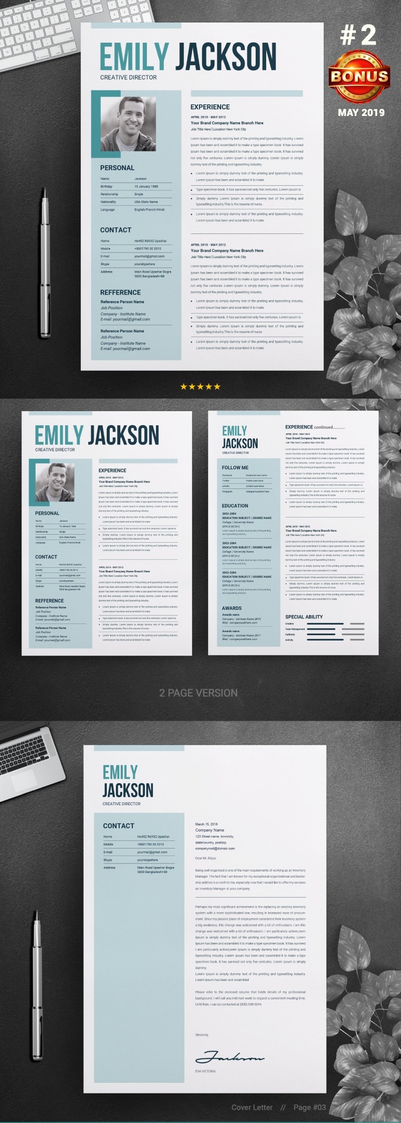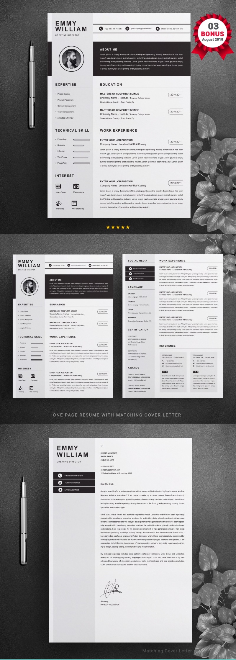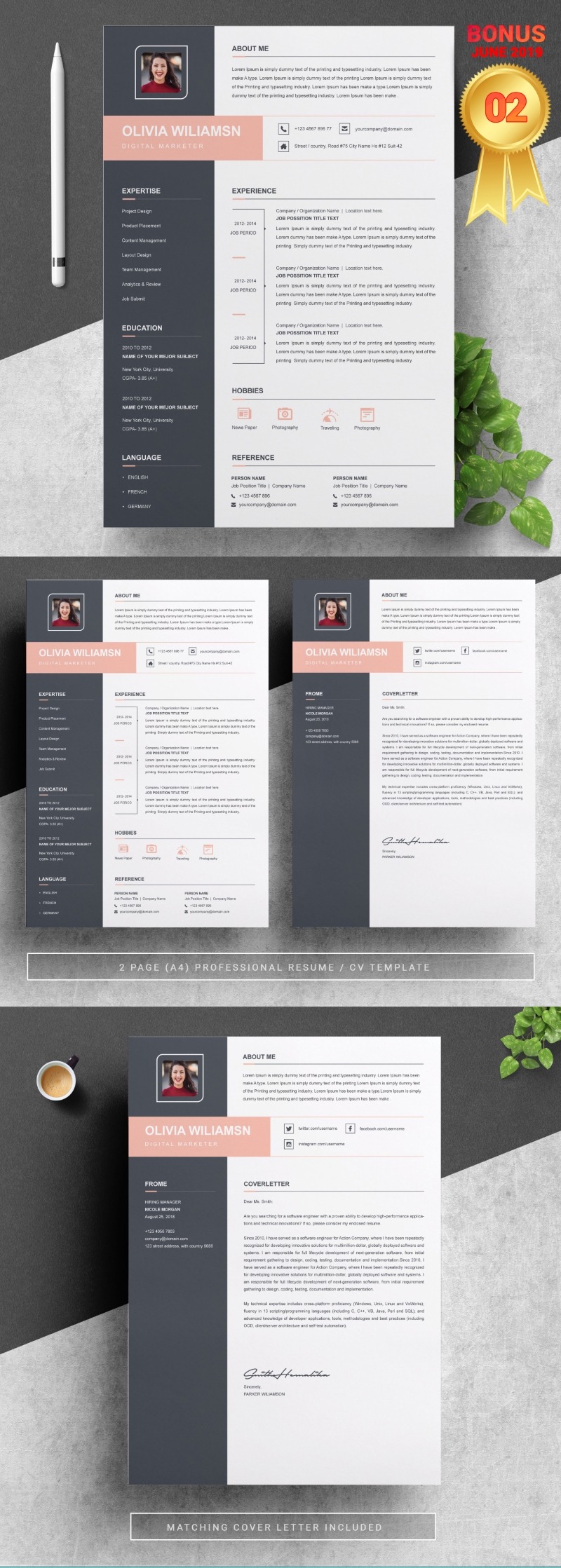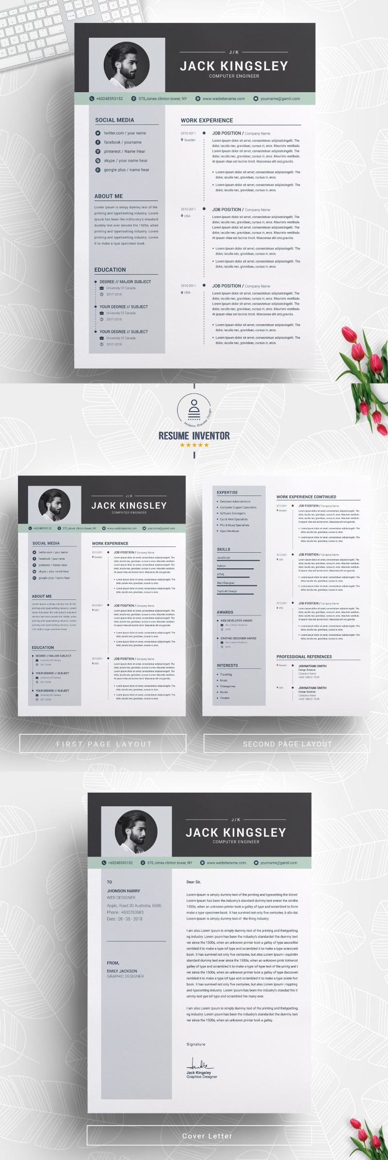 - Matching cover letter template for every CV template (can also use as a Thank You letter)