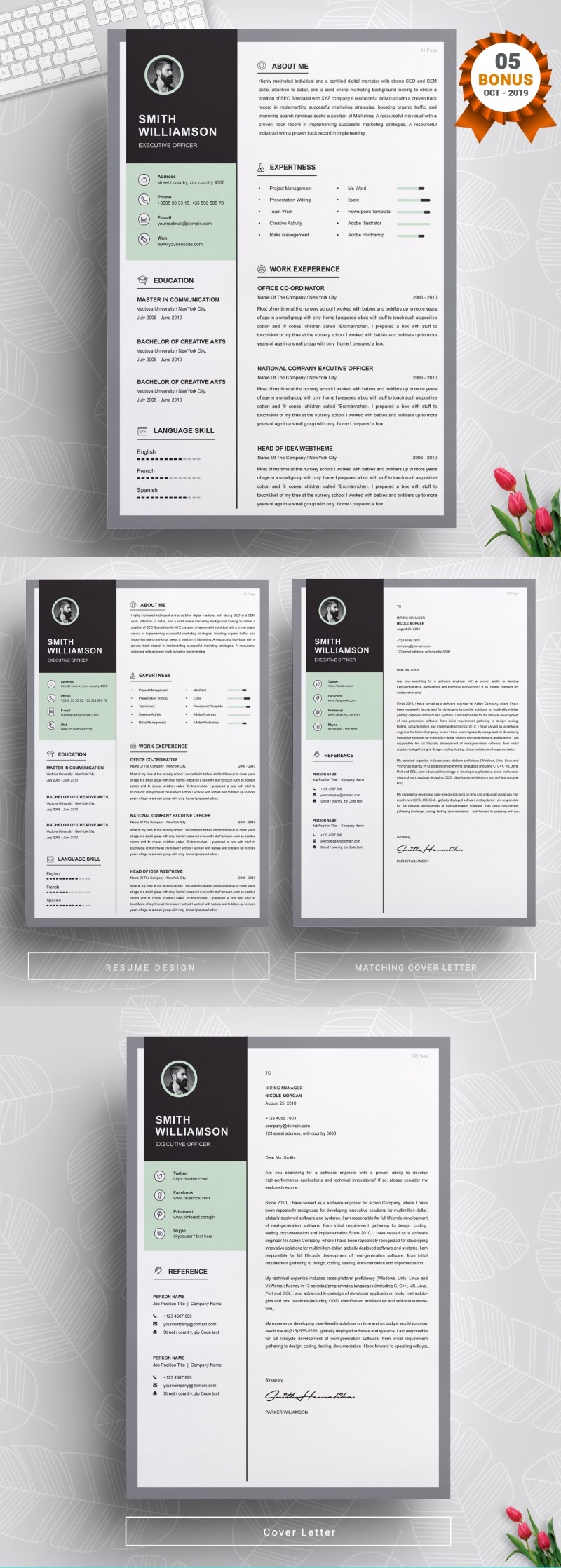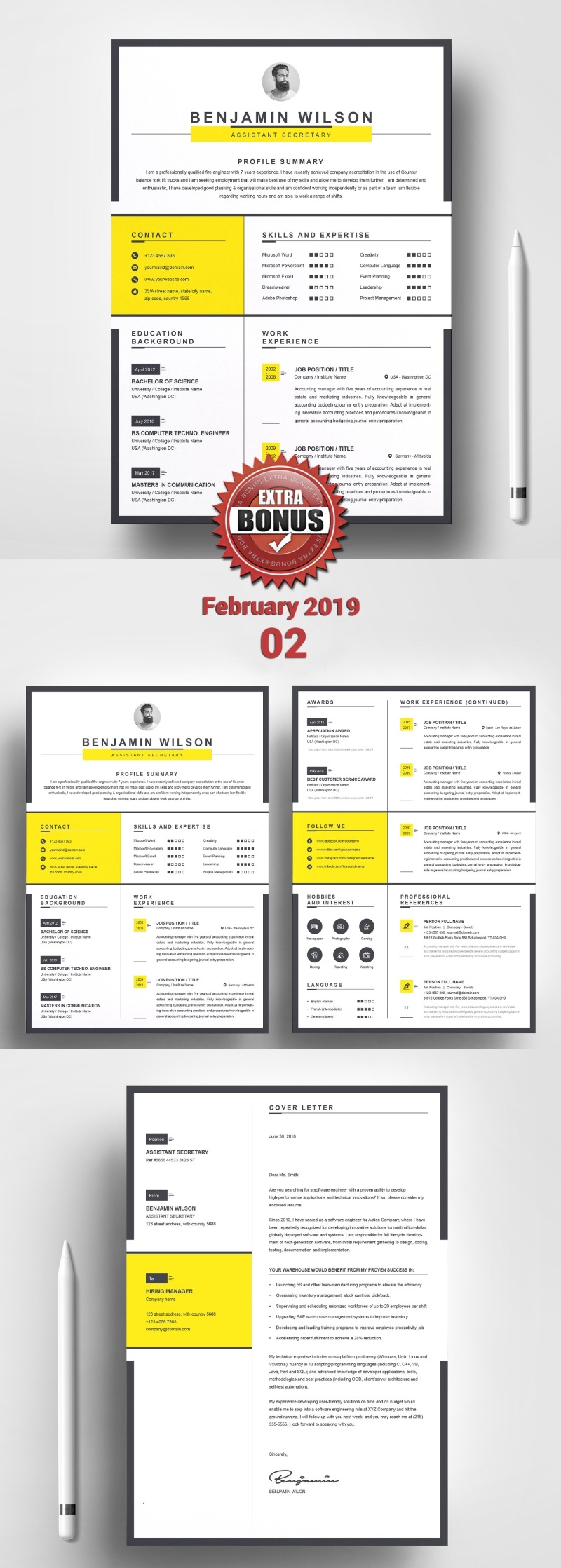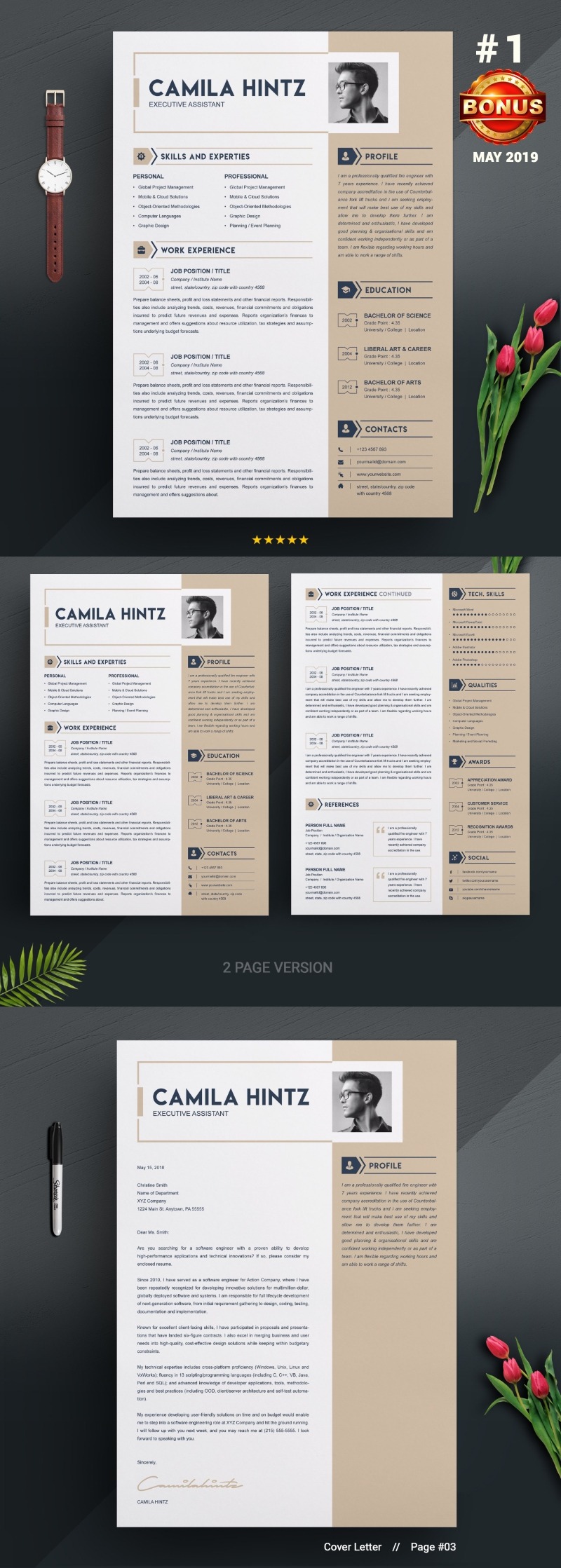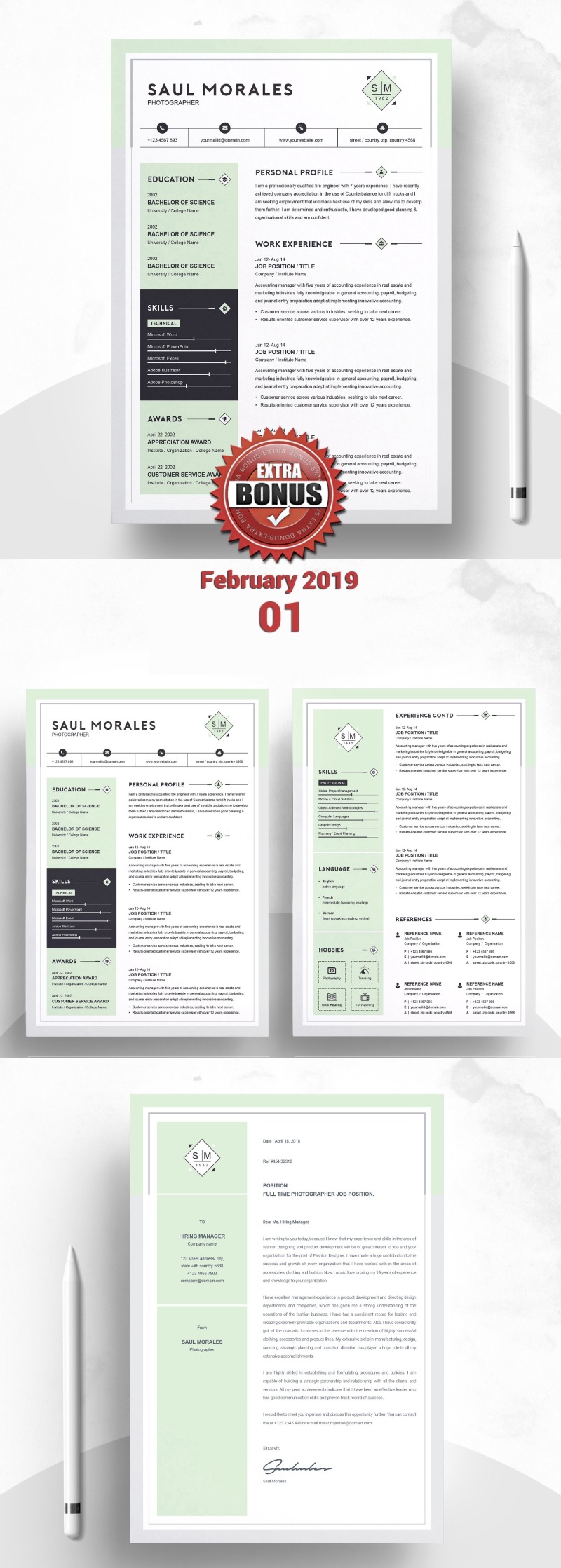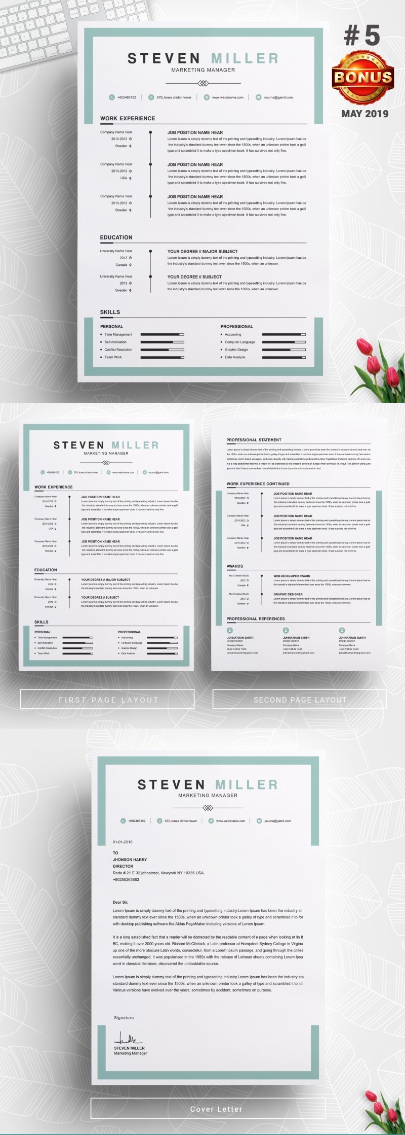 - Matching cover letter template for every CV template (can also use as a Thank You letter)