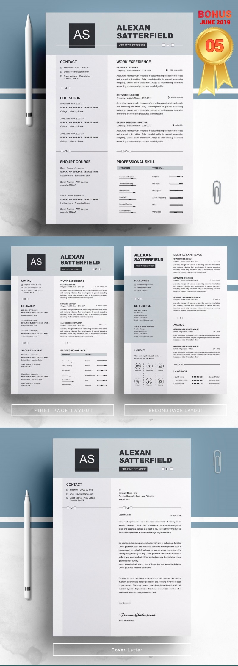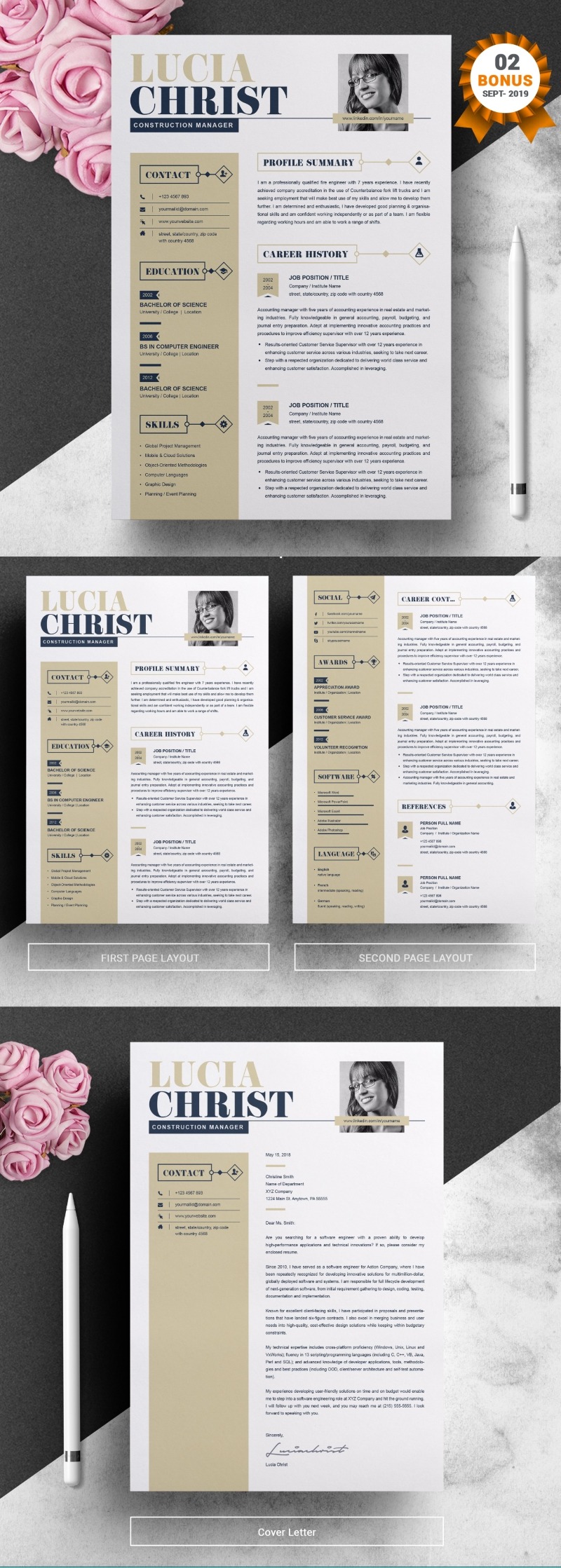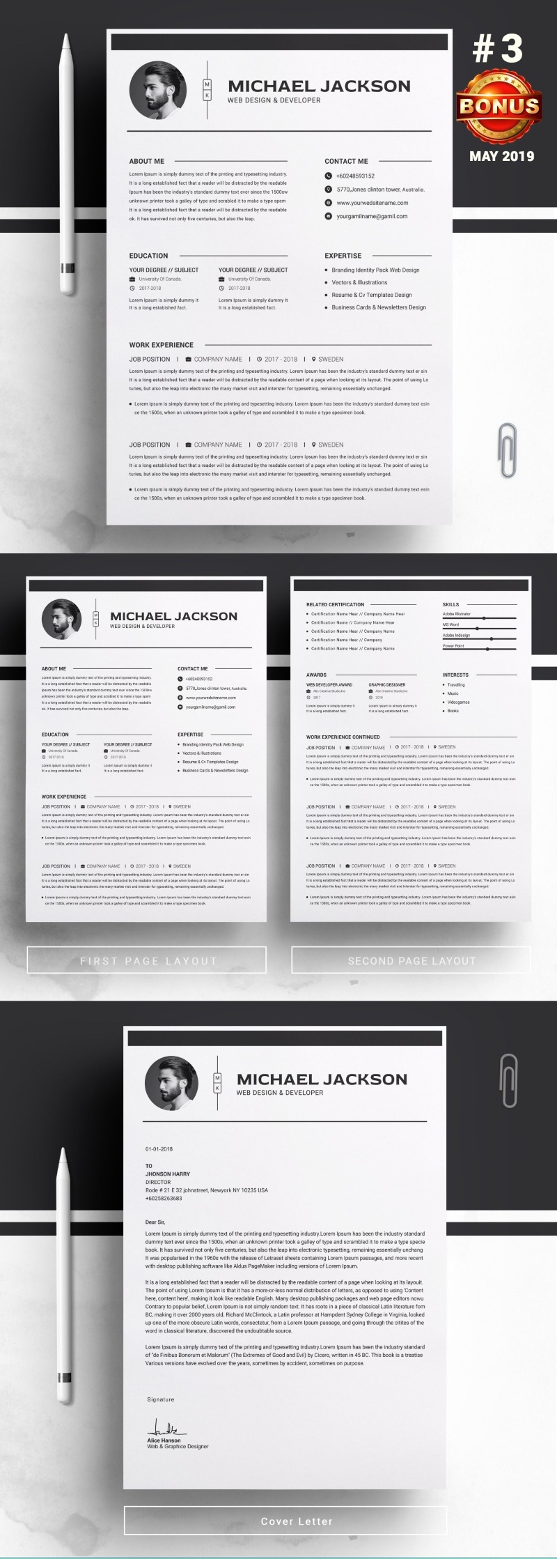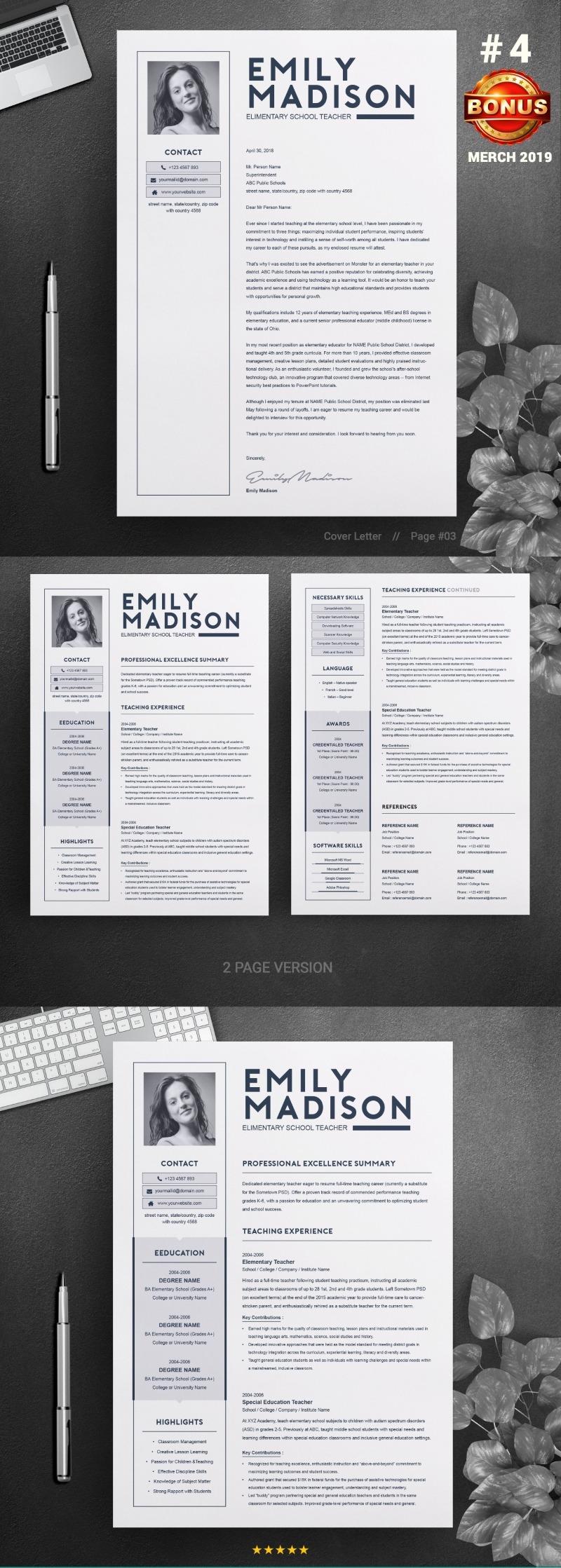 - Matching cover letter template for every CV template (can also use as a Thank You letter)