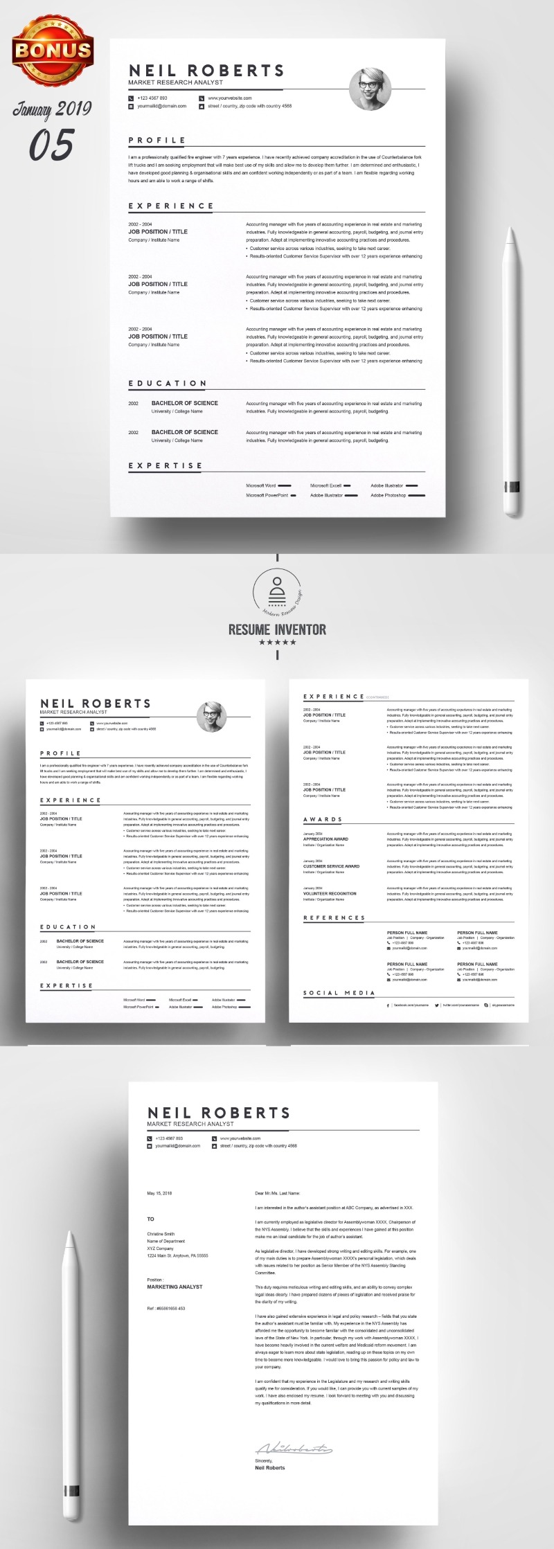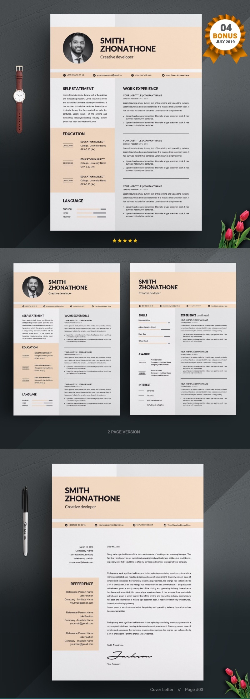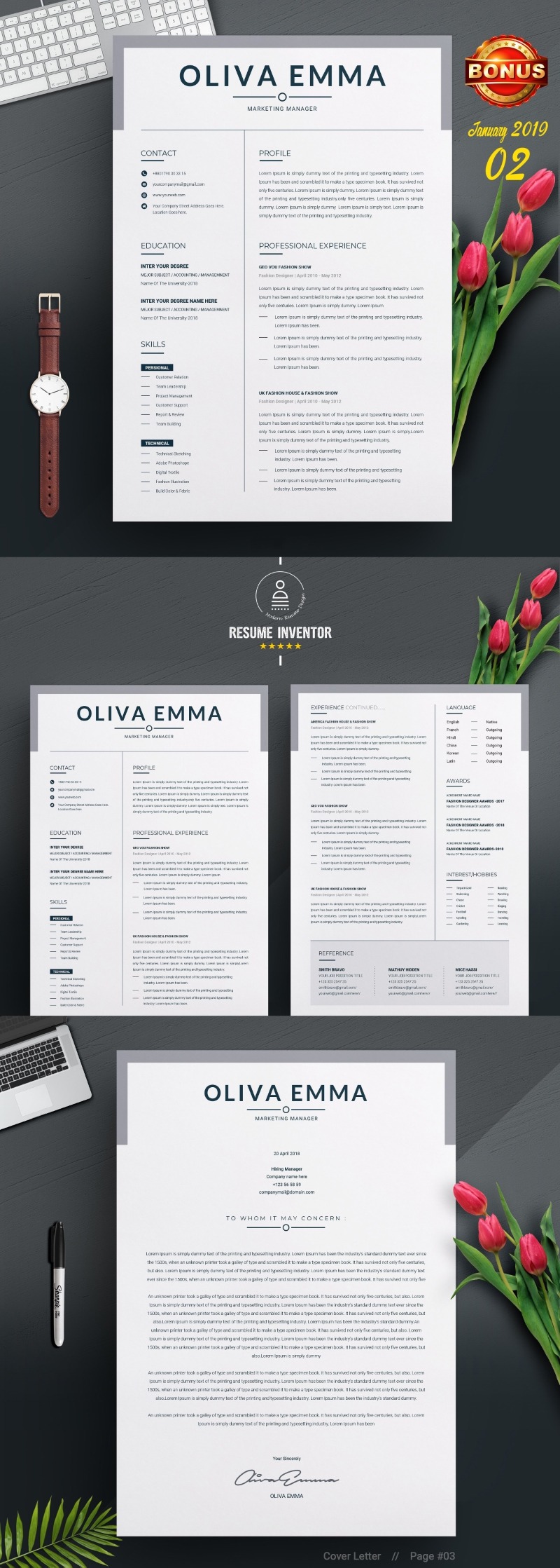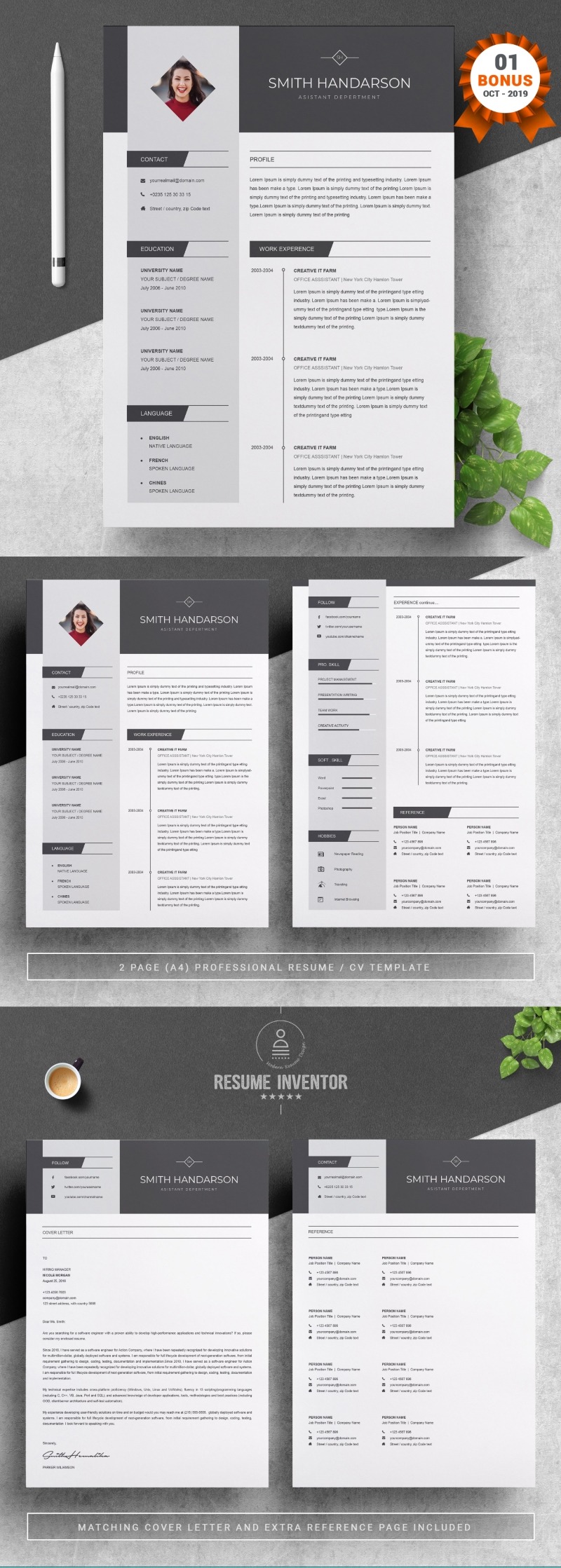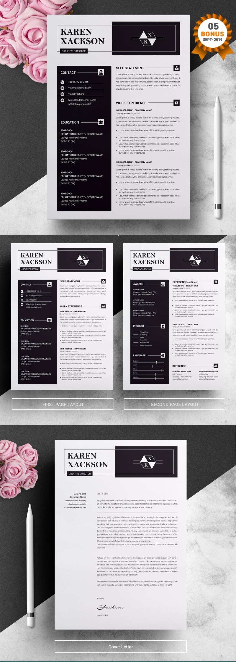 - Matching cover letter template for every CV template (can also use as a Thank You letter)