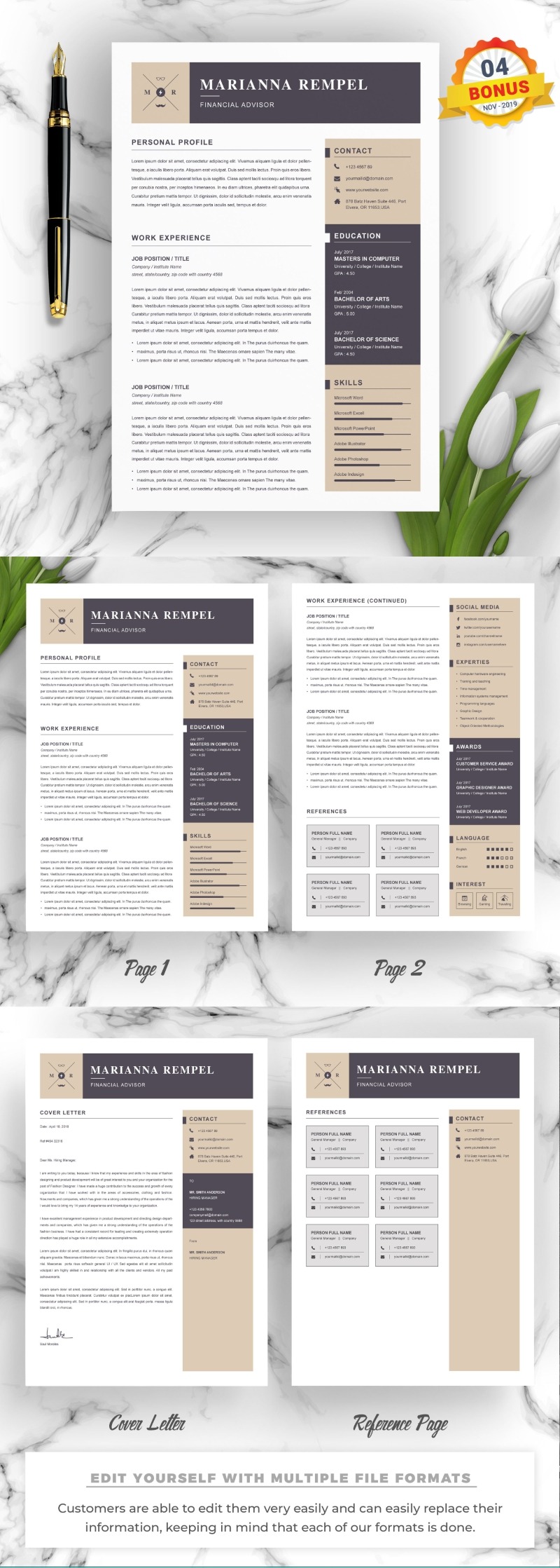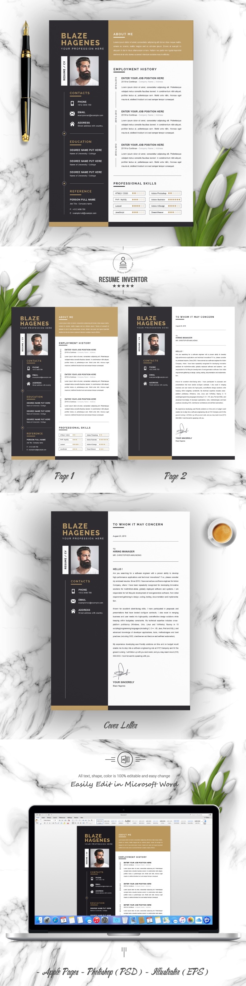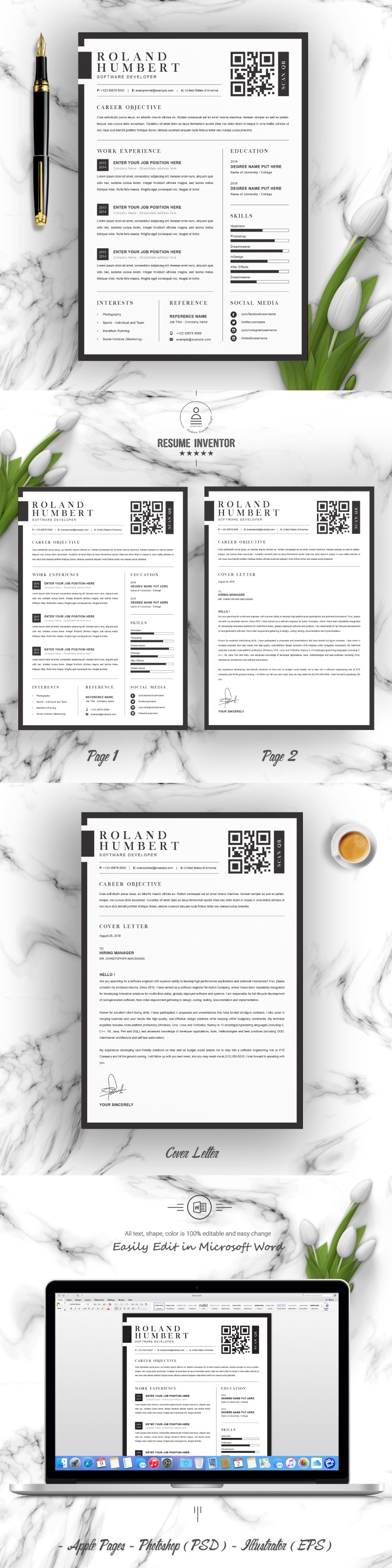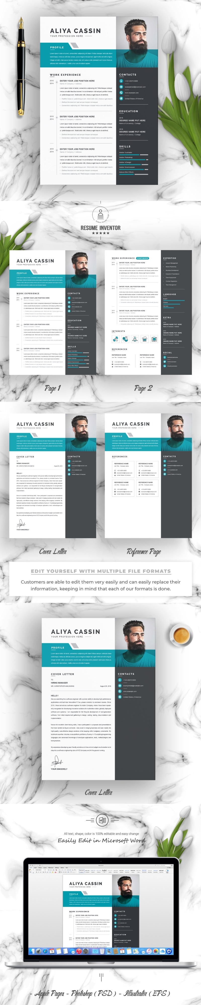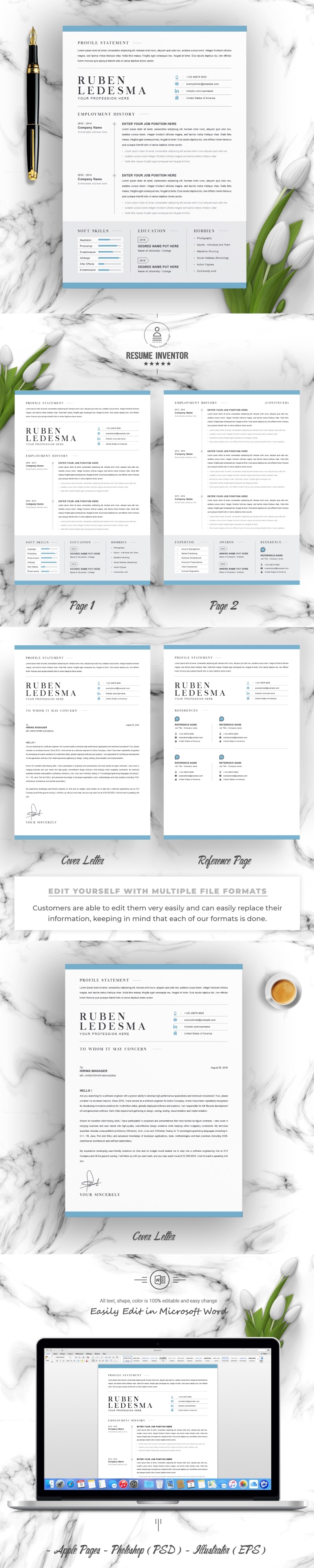 - Files for Microsoft Word (.docx), Apple Pages (.pages), Photoshop (PSD) & Illustrator (EPS)