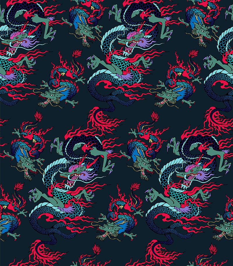 100+ Oriental Style Fabric Design Vector Patterns: Dragons, Animals, Abstracts & More