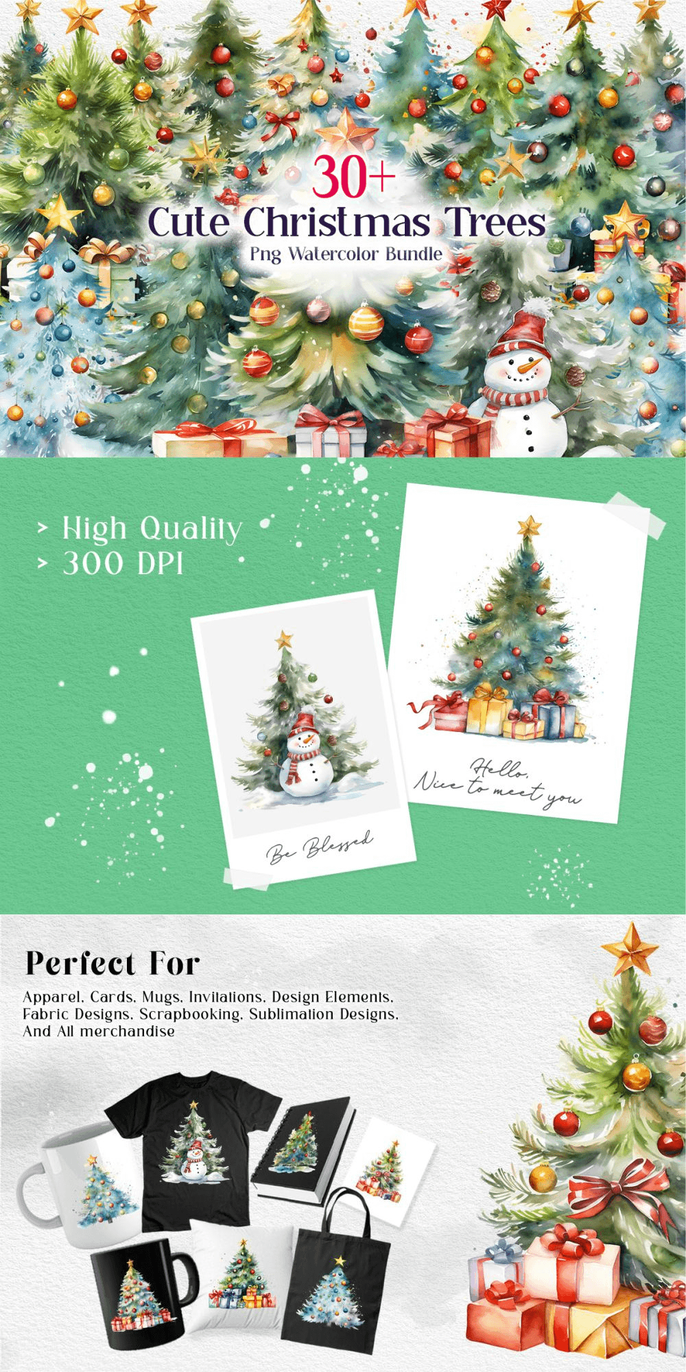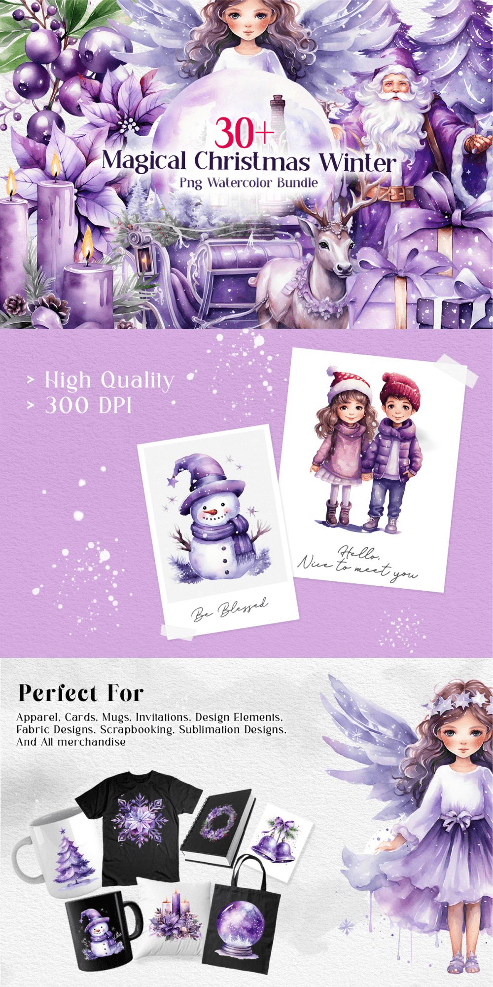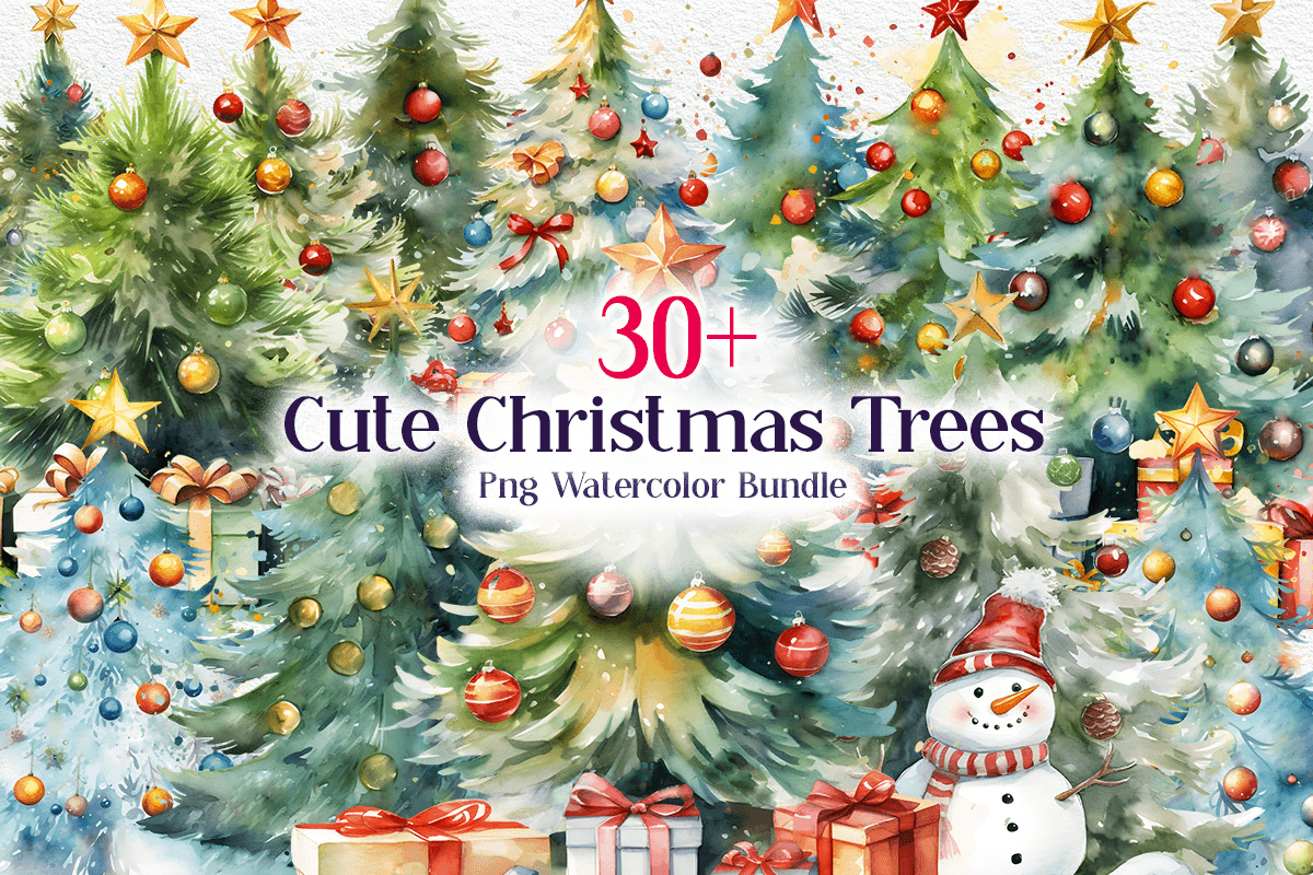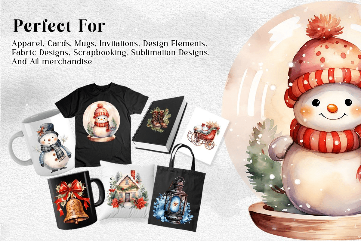 A brand new collection of watercolor illustrations with winter and christmas themes, over 1000 designs featuring animals, characters, decorations, patterns, characters, scenes & more, with various styles including paper cutouts, 3D illustration, watercolor painting, cartoon watercolors and many more