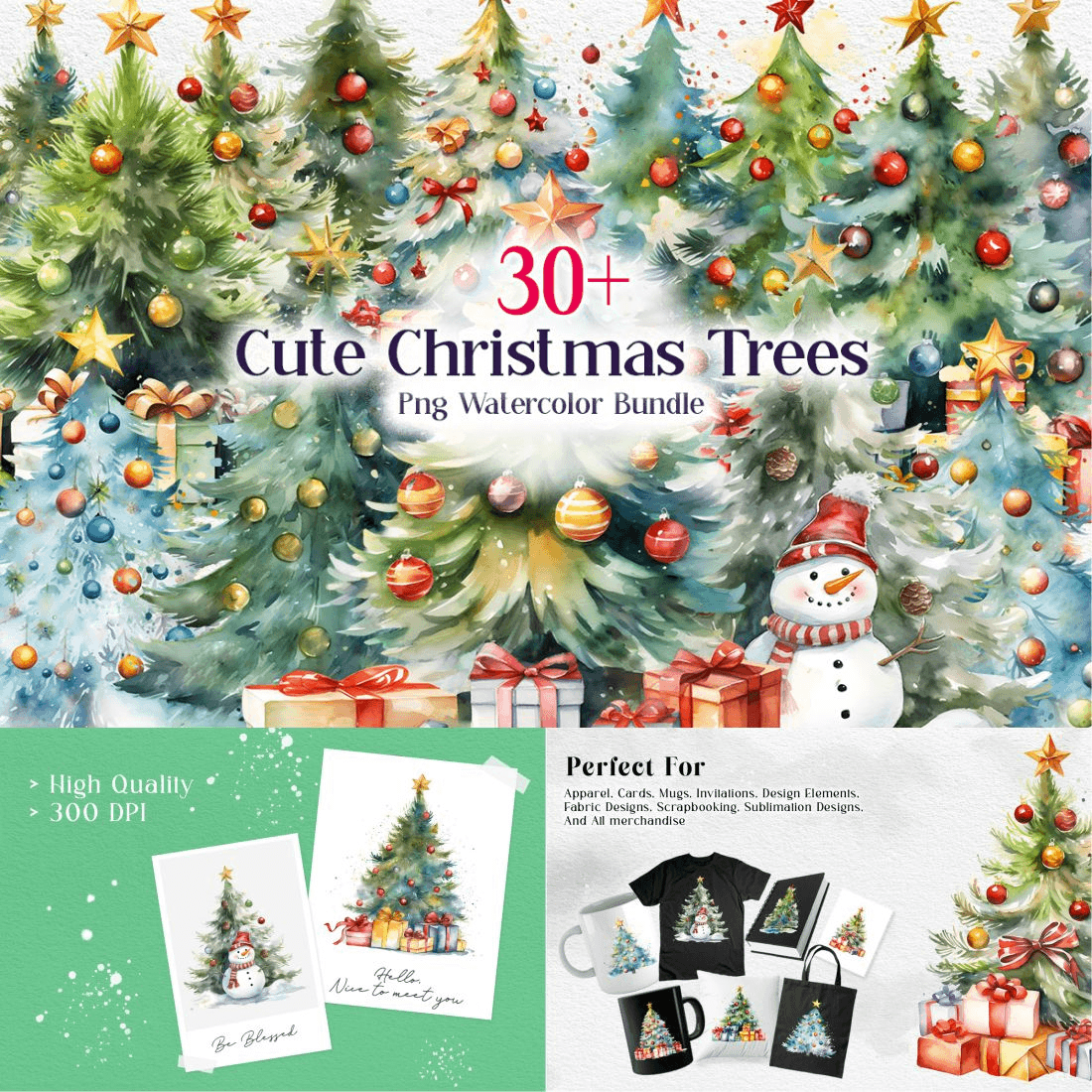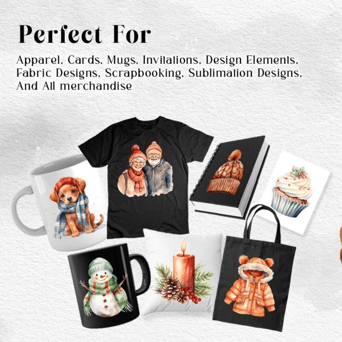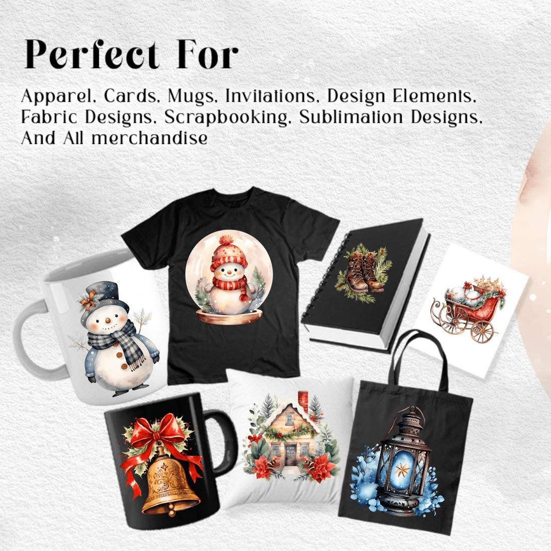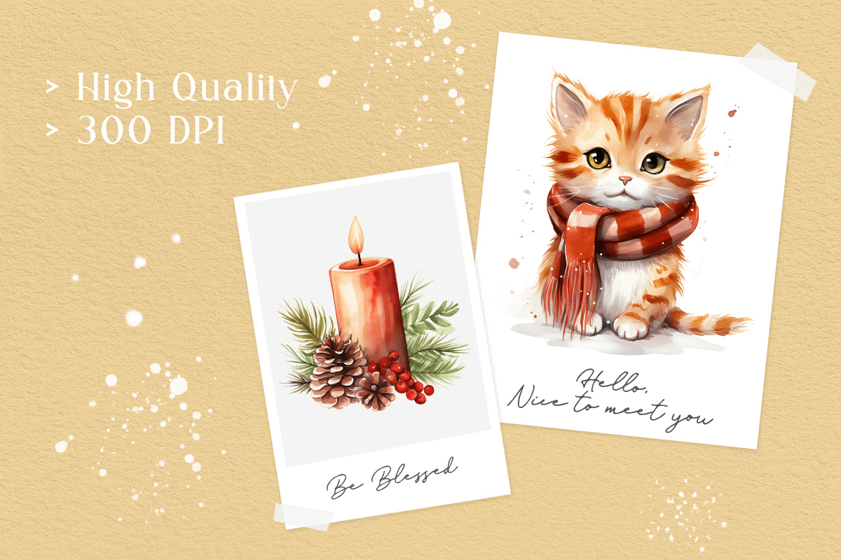 A brand new collection of watercolor illustrations with winter and christmas themes, over 1000 designs featuring animals, characters, decorations, patterns, characters, scenes & more, with various styles including paper cutouts, 3D illustration, watercolor painting, cartoon watercolors and many more
