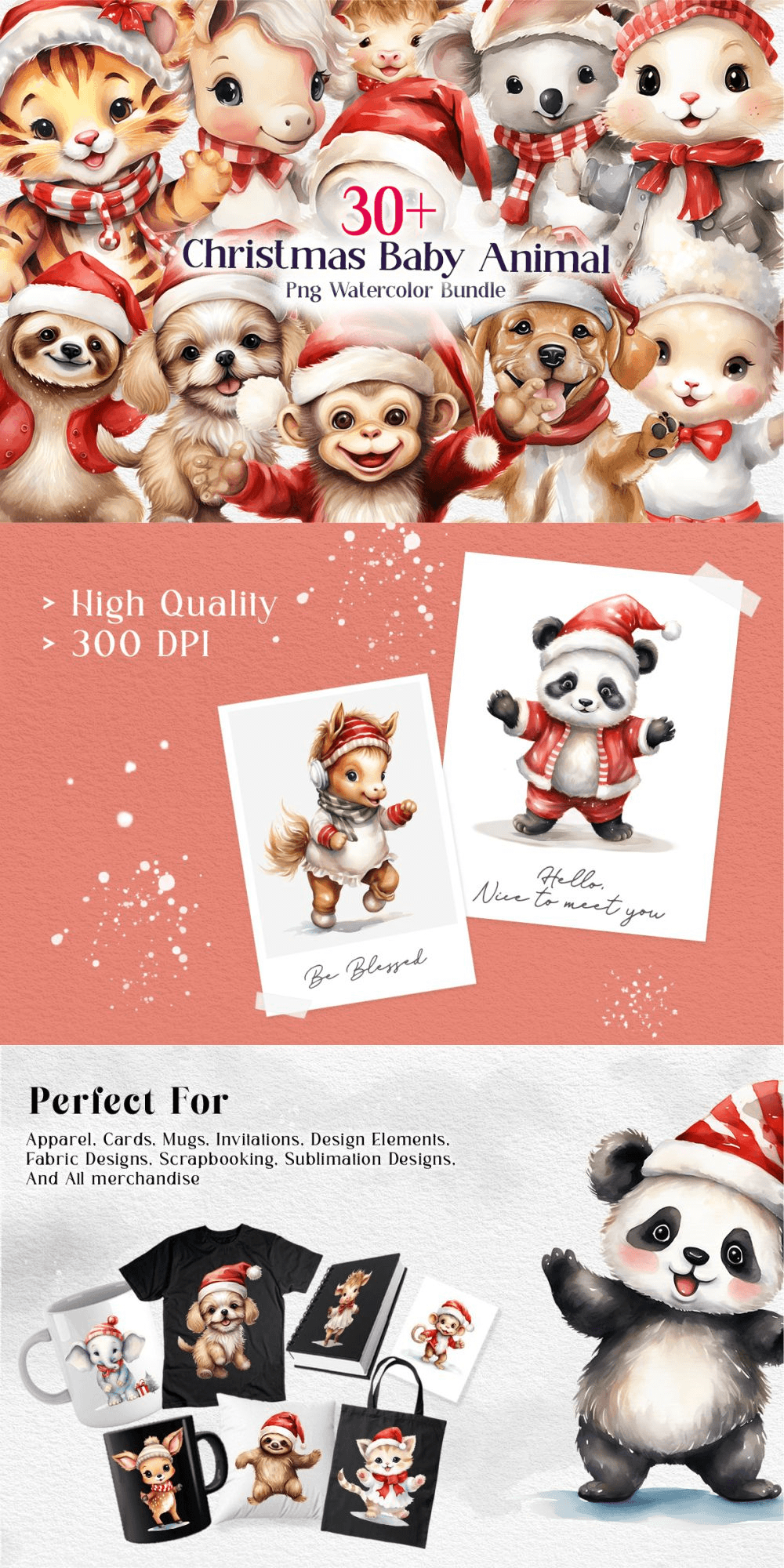 1000+ Christmas Watercolor Illustrations Pack – Animals, Characters, Objects & More