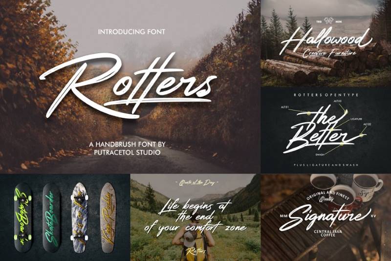 The pack delivers every font in OTF file format as well as TTF & WOFF for web use; tons of different design styles included like retro/vintage fonts, script, brush, signature, sans-serifs & many more!