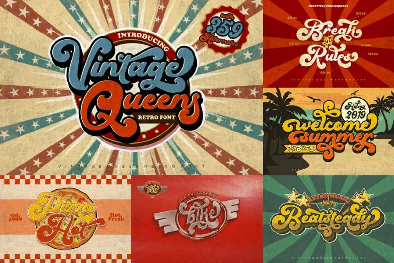 - Various font styles (Retro, Vintage, Script, Brush, Signature, Display, Sans Serif & many more!)