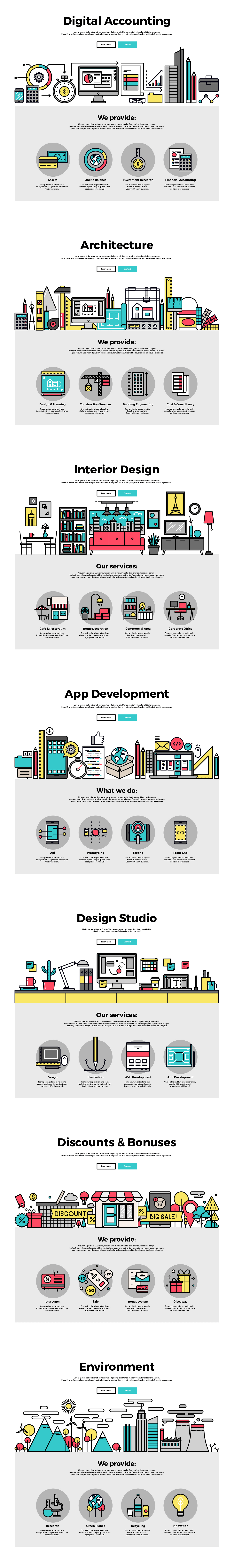 This collection consists of several concept-based illustrations and icons, assembled in pre-made design templates. The pack includes 50+ different theme-based templates with one banner illustration and four theme-related conceptual icons.
