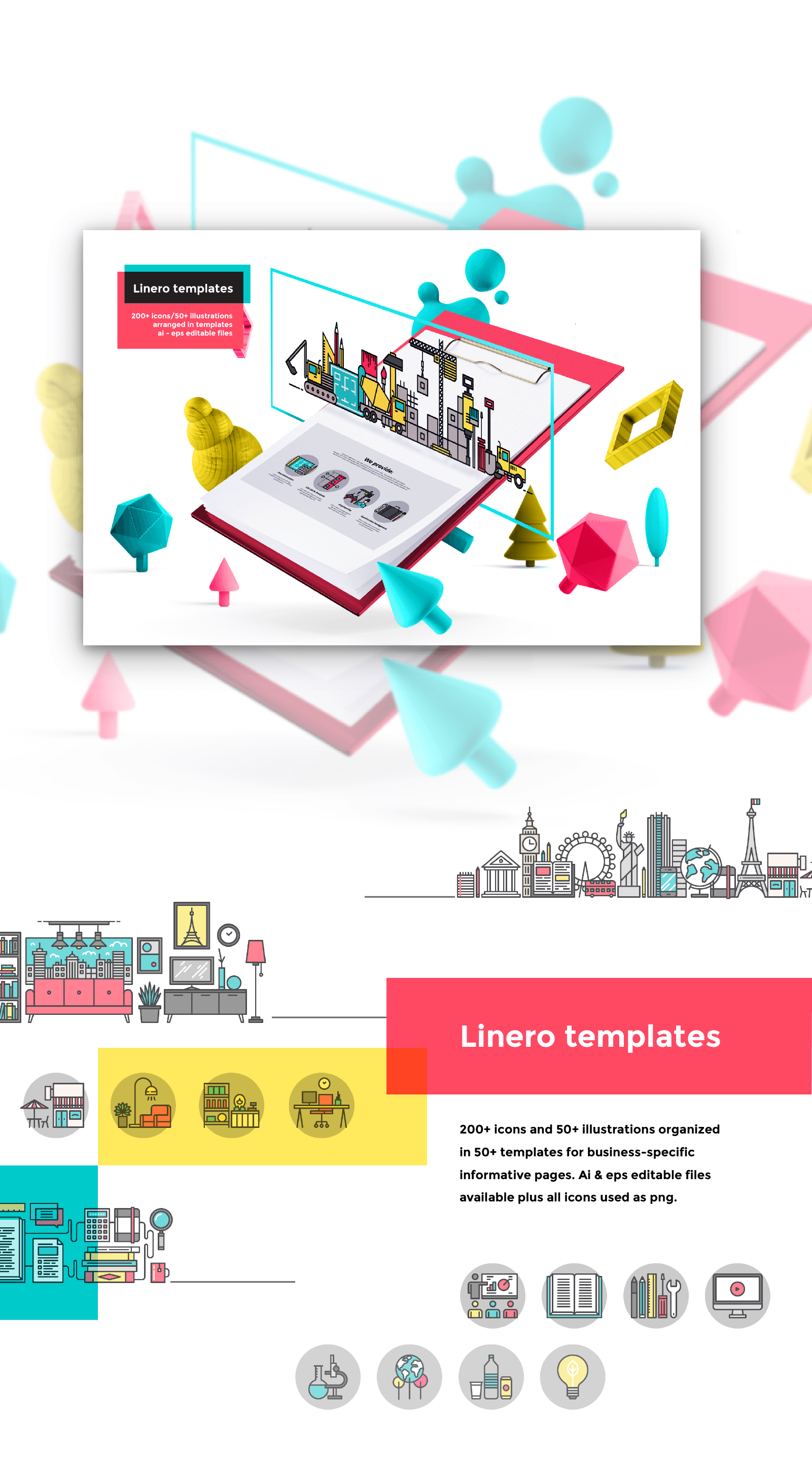 Linero Templates and icons (200 vector icons + 50 illustrations)