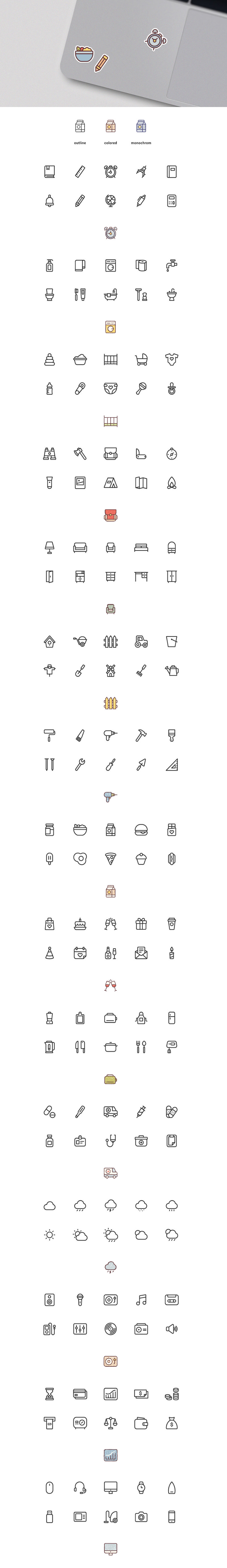 A set of 150 icons with a general line style art built for websites and mobile applications. It comes in colored, outline & monochromatic styles and in AI, EPS, and PNG file formats. Designed by Elmira Gokoryan.