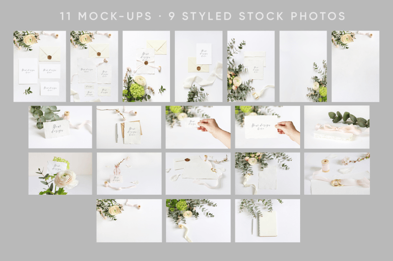 This bundle contains 150+ beautiful mockups & styled photos with various themes like wedding, valentine’s day, autumn, vintage & more! Perfect resource for shop owners, artists, calligraphers, creative people or bloggers who want to showcase their latest design, for wedding stationery presentations, branding & social media.
