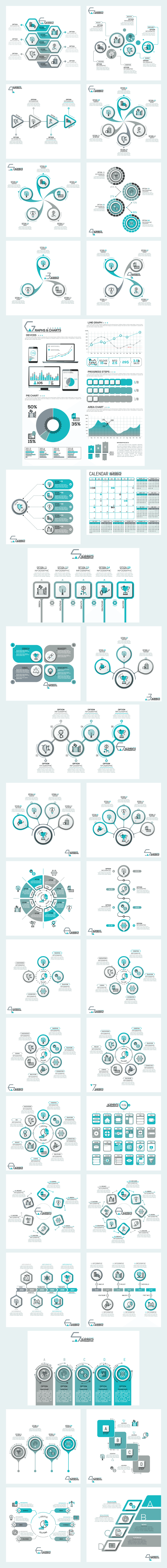 The pack contains over 1000 infographic templates & web/business concepts, 1500+ vector icons, 6000+ infographic & creative presentation slides, and over 9000 individual infographic elements