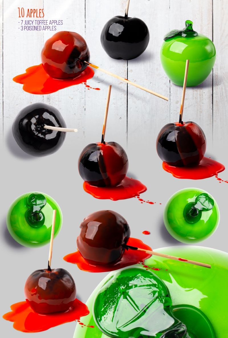 A scene creation bundle featuring 200+ unique isolated objects with a halloween theme: candy, pumpkins, witch hats, spiders, painted fruit, skeletons, skulls & more!