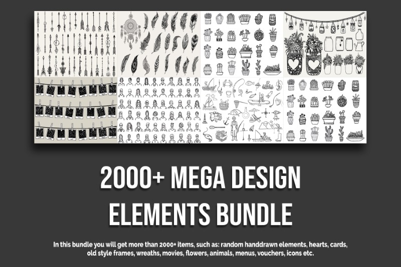 2000+ Design Elements Megabundle – Cards, Florals, Characters & More