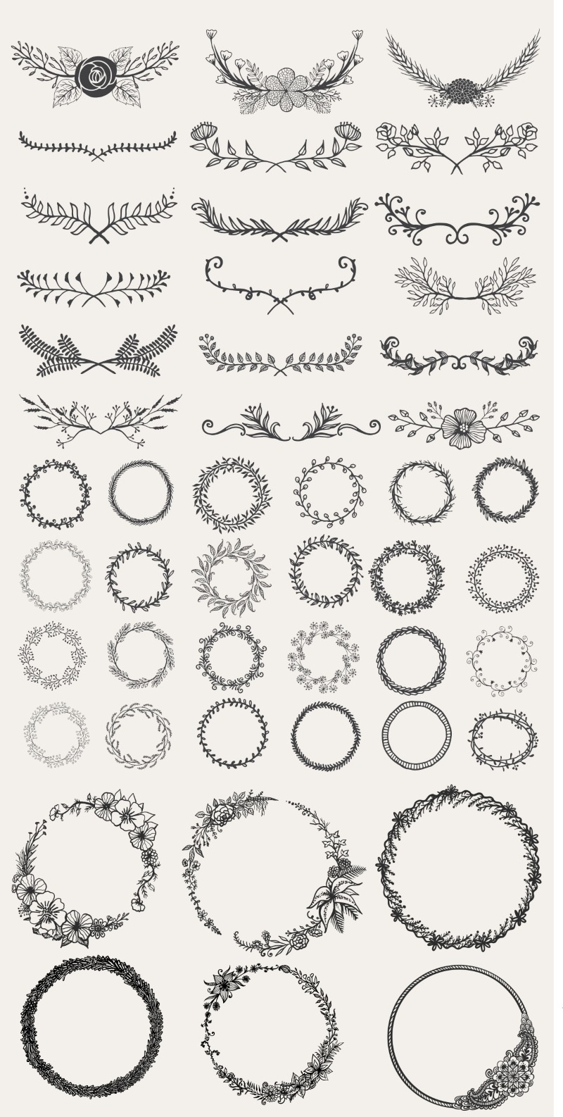 This collection features everything you’ll need to easily put together great looking compositions for a wide array of digital & print designs – create feminine patterns, floral/botanical illustrations, tribal style compositions and patterns, frames for print templates in many different styles, chalkboard drawing style compositions, full color stickers, etc