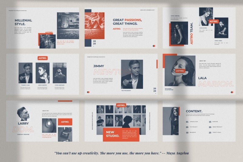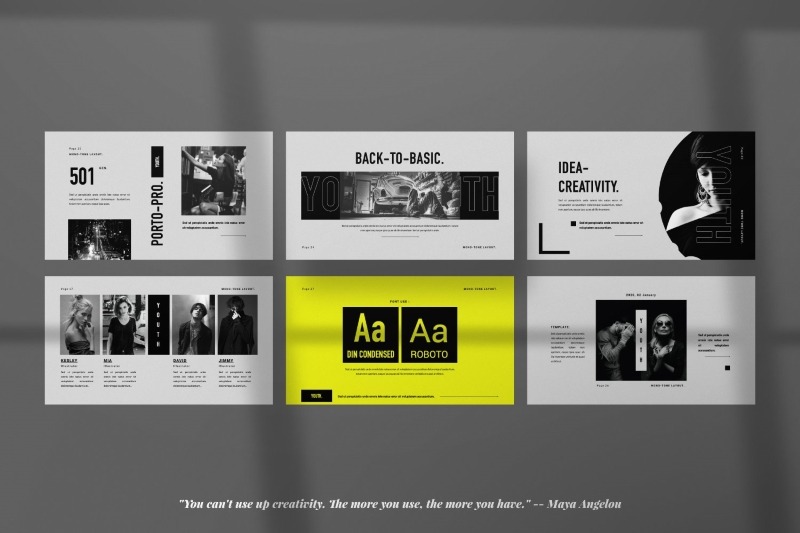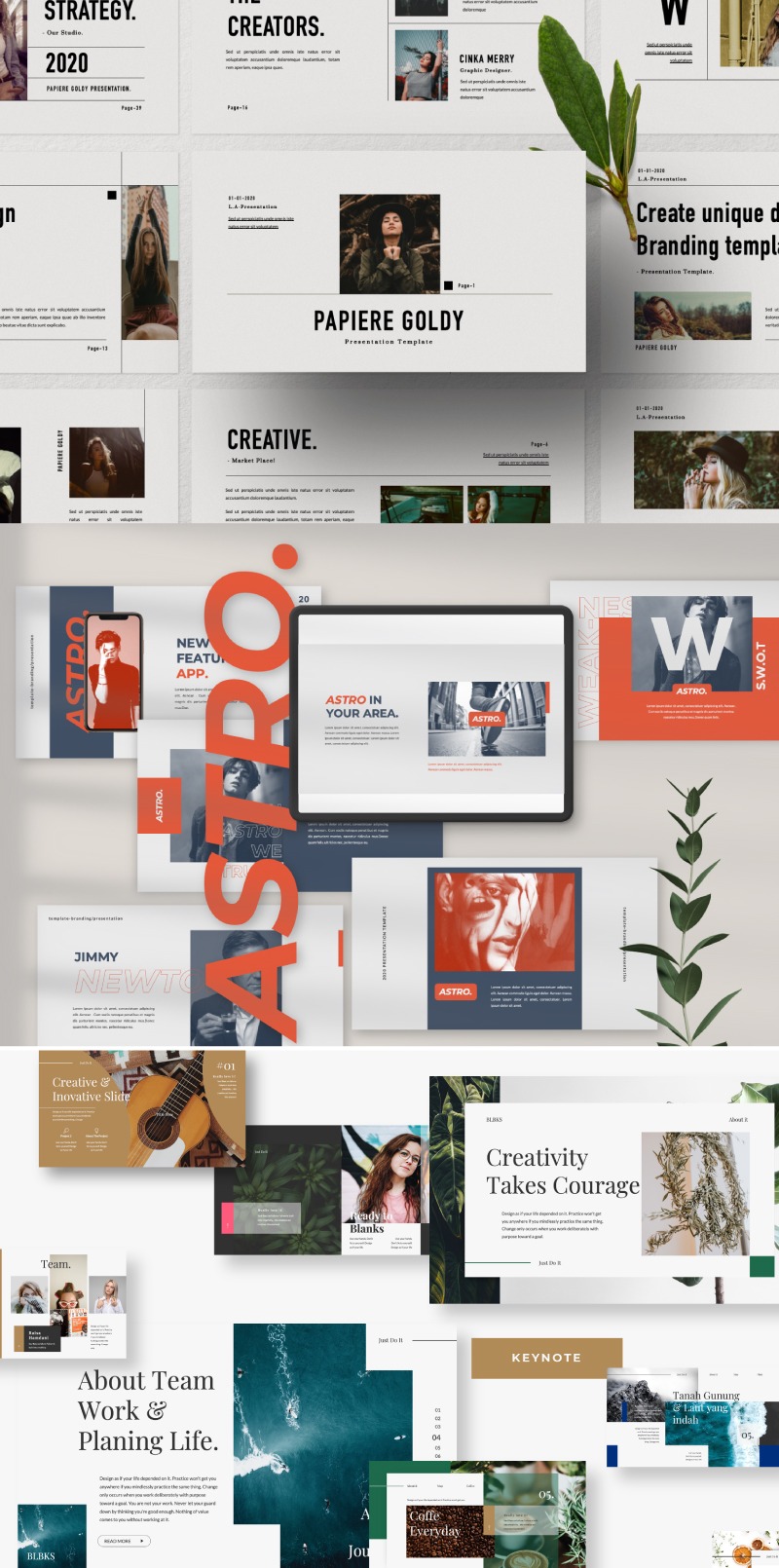 All new presentation templates pack featuring 30+ uniquely designed templates with files for PowerPoint, Keynote & Google Slides featuring a huge variety of stylish layouts, a strong focus on typography & a variety of vector icons, maps & charts, portfolio slides & more
