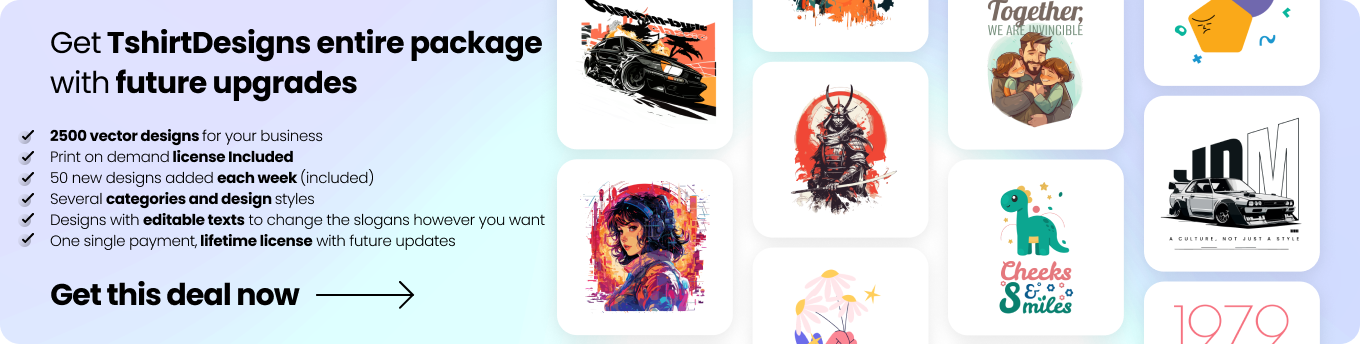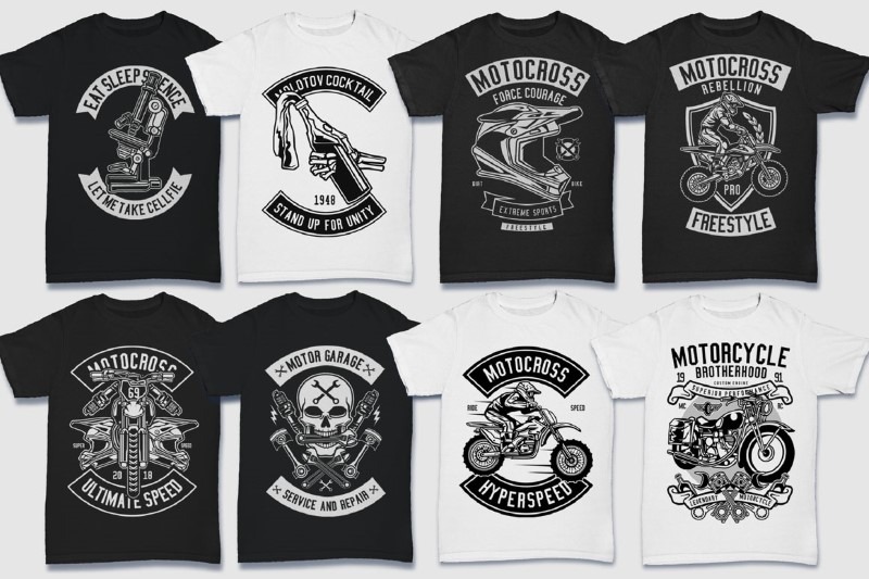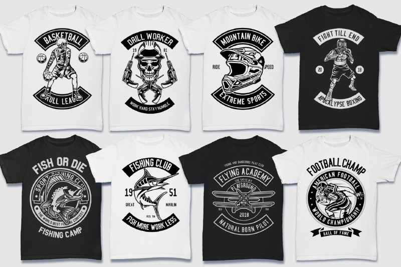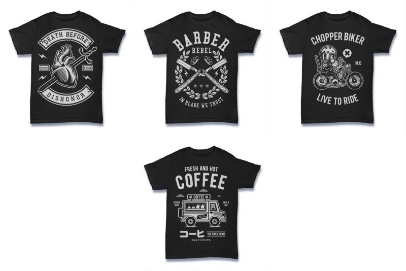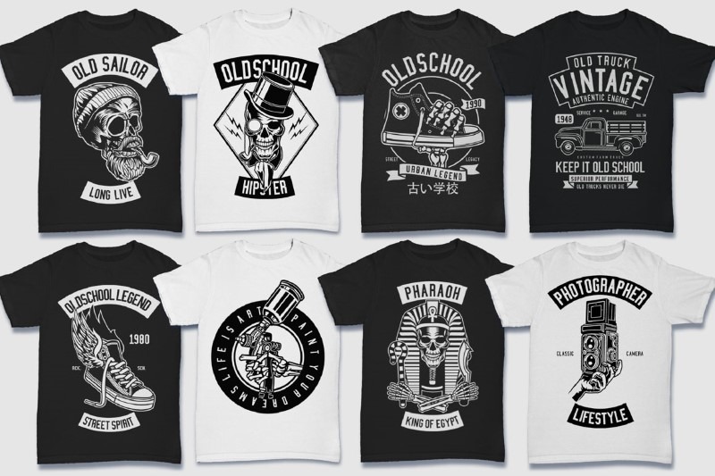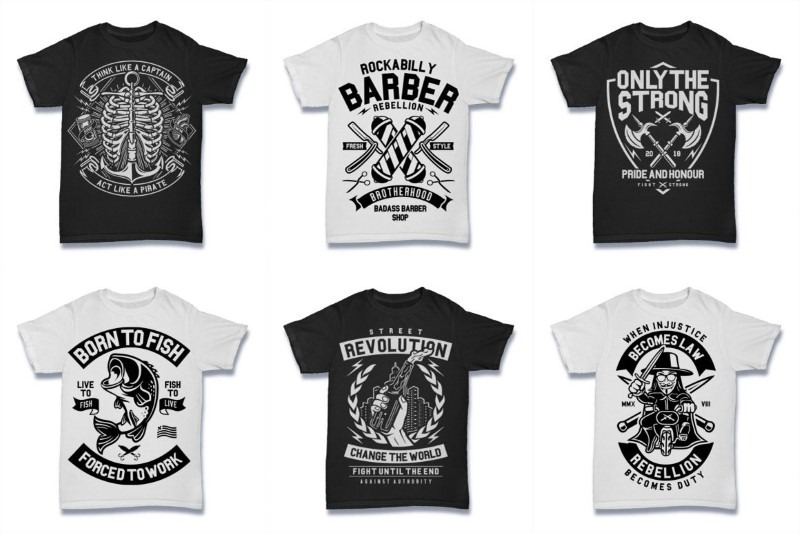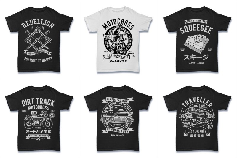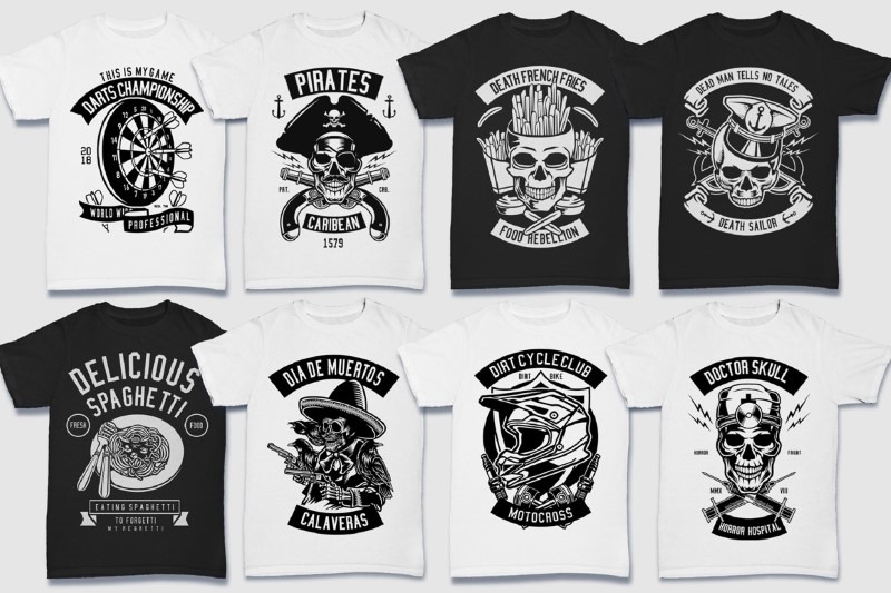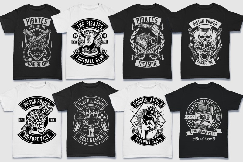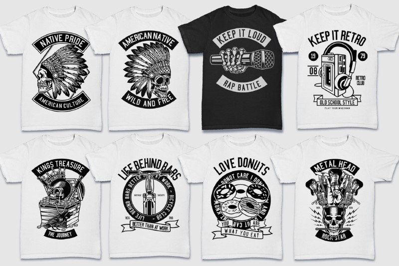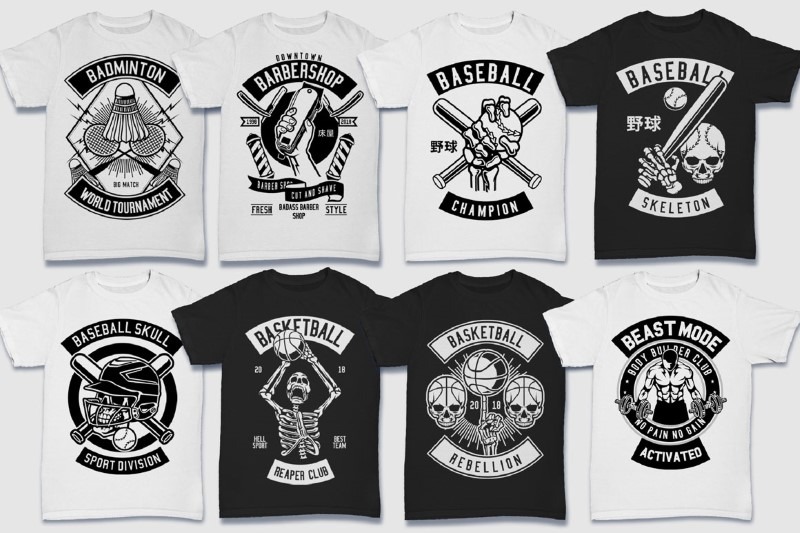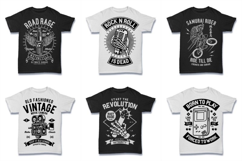 Huge pack of black & white tshirt designs featuring 300 unique illustrations delivered in a variety of vector formats for maximum compatibility