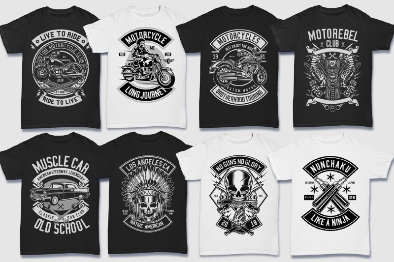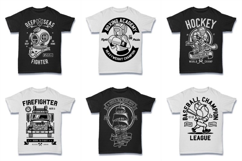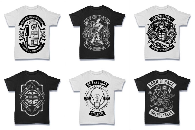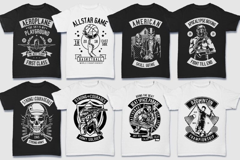 300+ Black & White Vector T-Shirt Designs Bundle – Ai, PSD, SVG, EPS & CDR File Formats