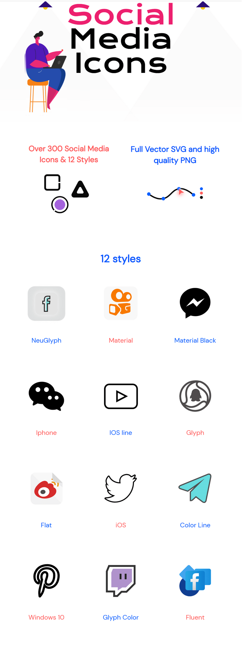 300+ Social Media Icons Pack, 12 Design Styles, SVG & PNG Files