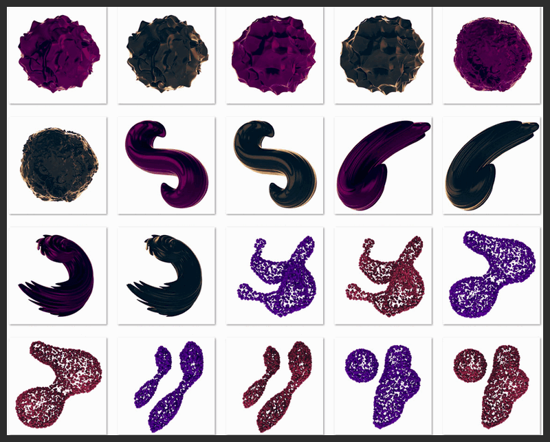 20 creative abstract 3D shapes with dark shades of red, brown, and purple. The .zip archive includes them all in separate PNG format files with transparent backgrounds.