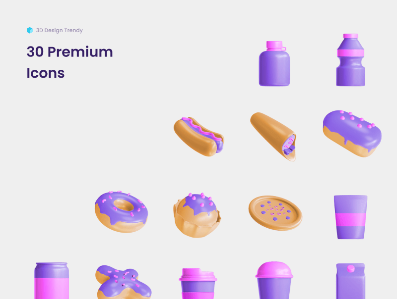 Check out this brand new collection of 3D icons featuring a set of 100 editable icons in 2 different view perspectives (front and isometric) with all the essential metaphors for interface interactions as well as food icons and illustrations that you can use to decorate your projects, use as primary elements in your digital compositions for backgrounds & illustrations, or place in your templates for printing business cards, flyers, posters and more – you’ll find gears, calendars, notification bells, magnifying glasses for search functions, doughnuts, bottles, cups & many illustrations more!
