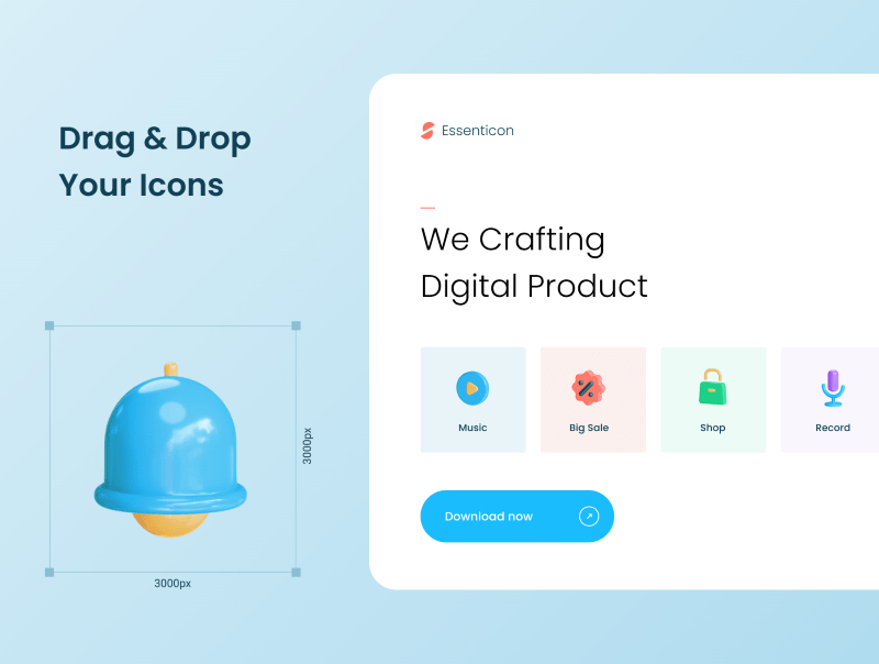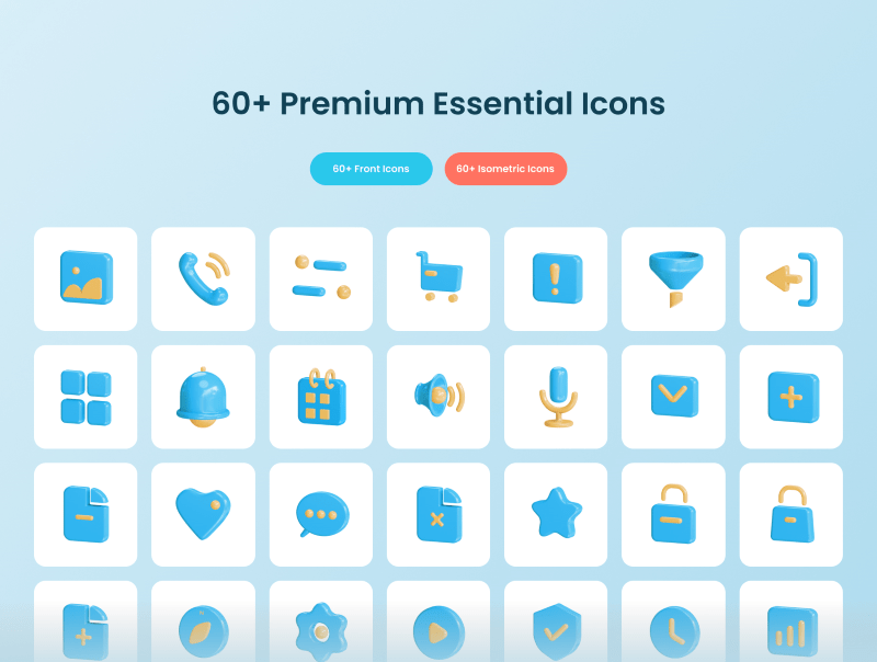Essential 3D Icons Pack – Files for Figma & Blender, Includes Transparent PNG