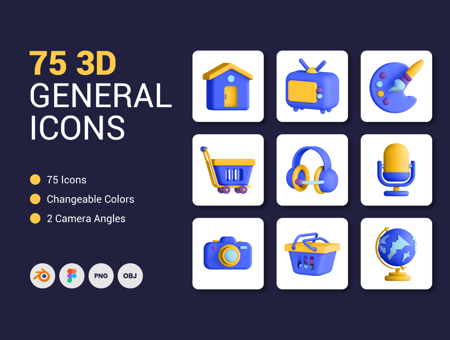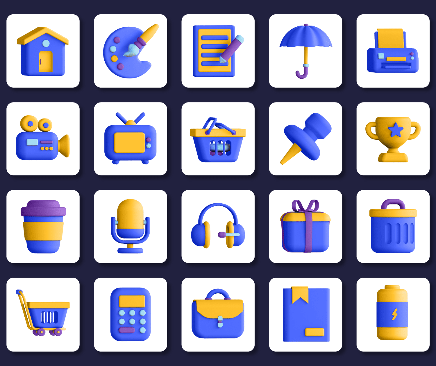 3D Icons Pack in PNG, OBJ, Figma & Blender Formats