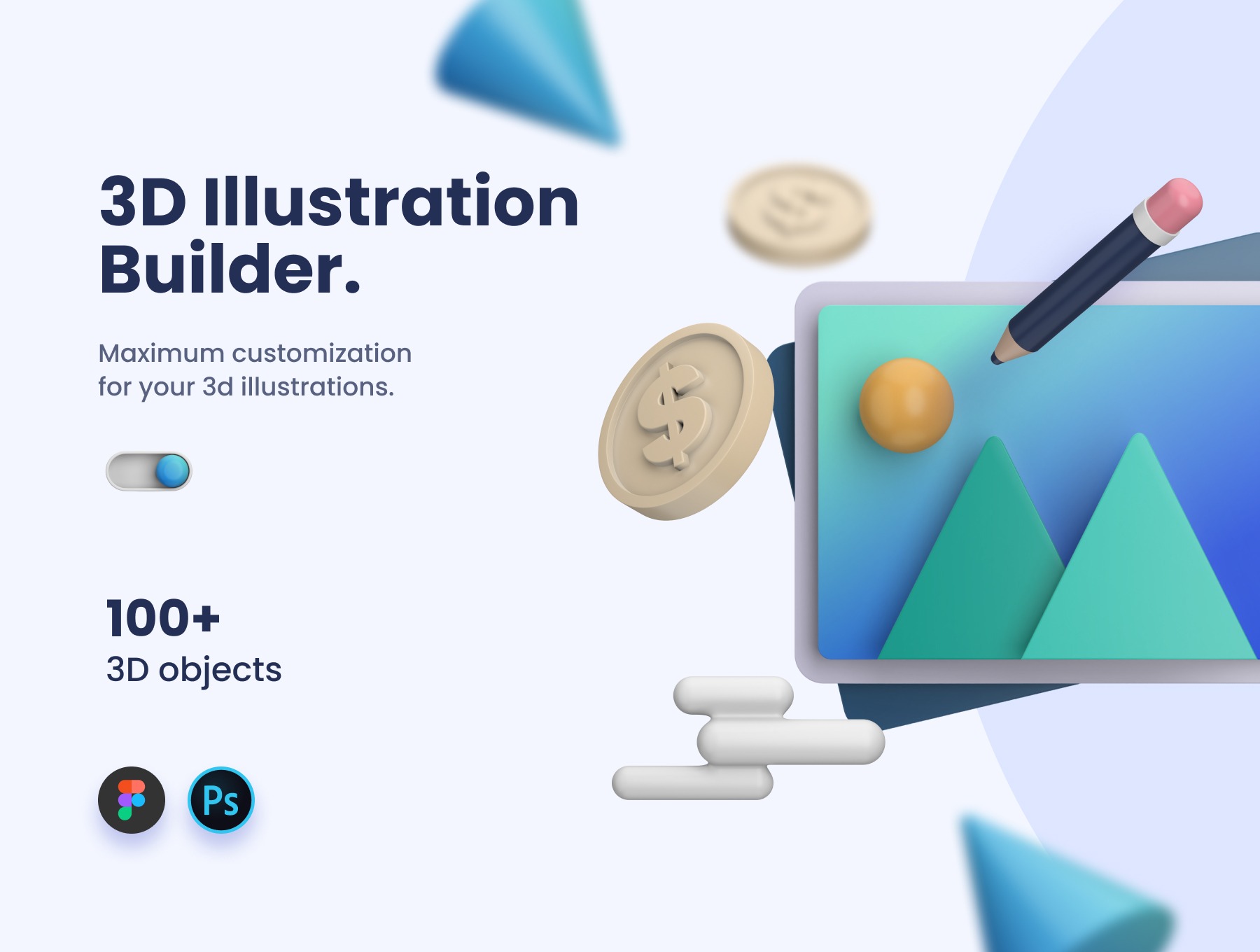 3D Illustrations Generator – 100+ 3D Objects in Figma, Blender, PSD & PNG