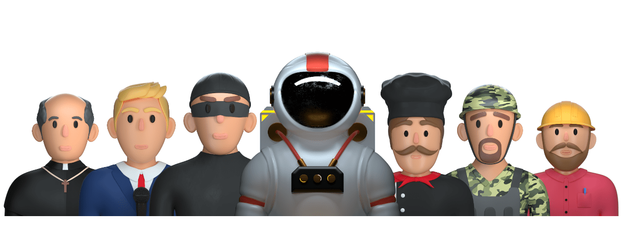 A set of 98 3D characters featuring several different professions & ethnicities, delivered in high resolution to use in all kinds of projects