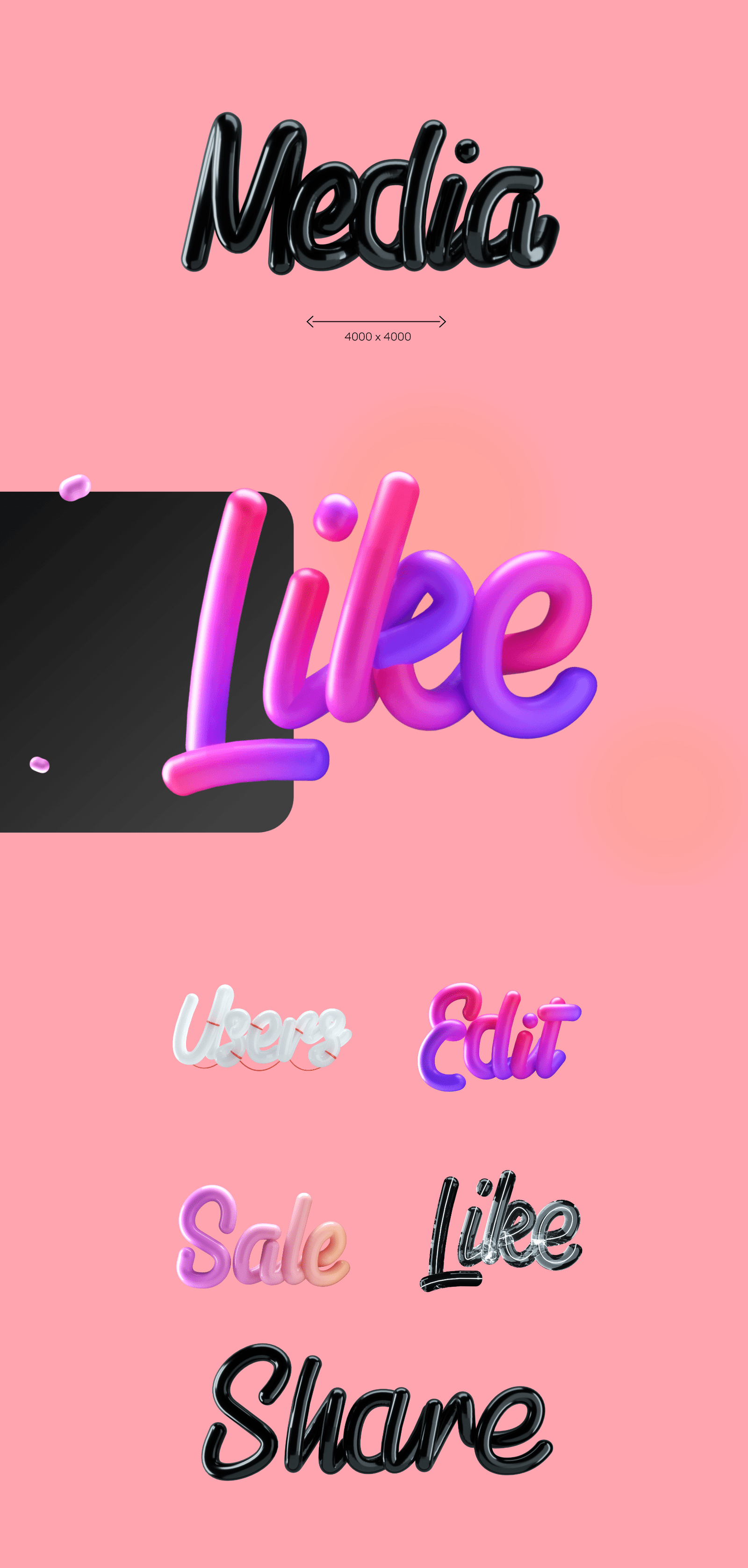 It contains 250 trendy 3D icons in 2 different view points (front & perspective) as well as 5 different color palettes (1250 3D icons in total!) – it also includes 98 3D characters in 4K resolution featuring many different professions, genders & ethnicities, and a complete 3D lettering toolkit with 5 different 3D alphabet styles and 260+ premade 3D lettering quotes – everything in this huge pack features transparent backgrounds & high resolution for digital & print use