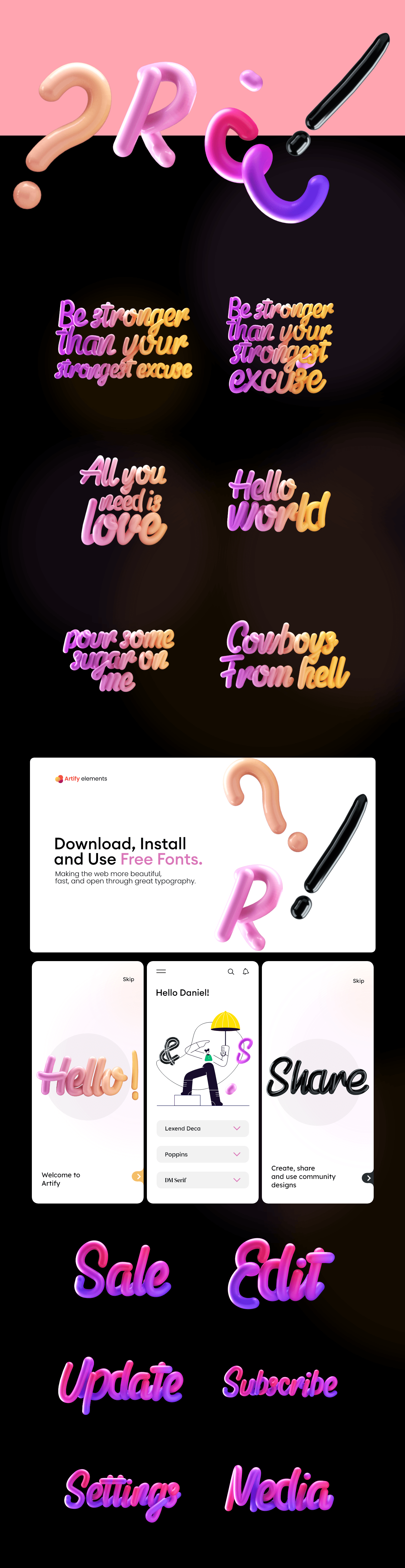 A massive bundle from Artify featuring over 1500 3D style design assets including 3D characters, 3D lettering designs & 3D icons delivered in 4K resolution, perfect for all kinds of web projects or print media