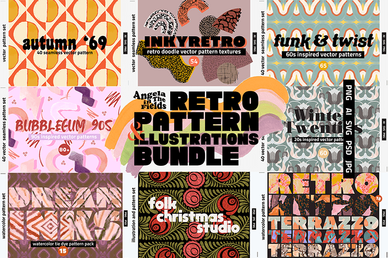 400+ Retro Patterns & Elements Pack – Ai, SVG, PSD & PNG Files