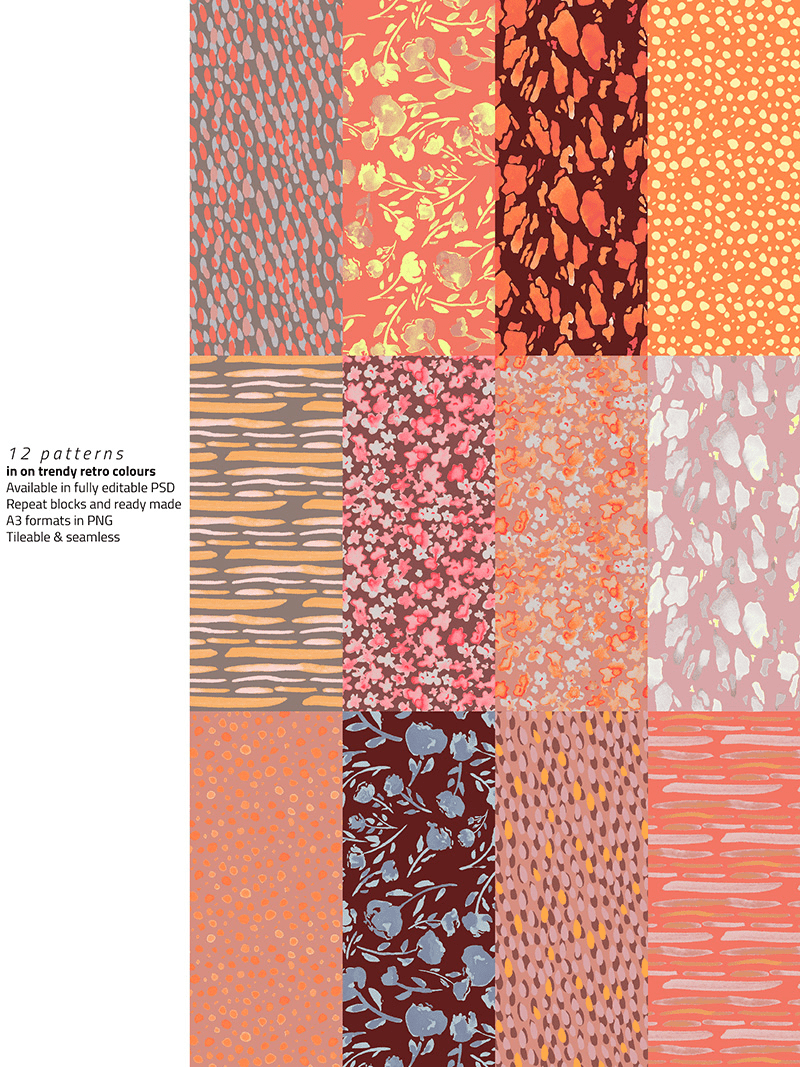 - 69 raster patterns (in PSD & JPG)