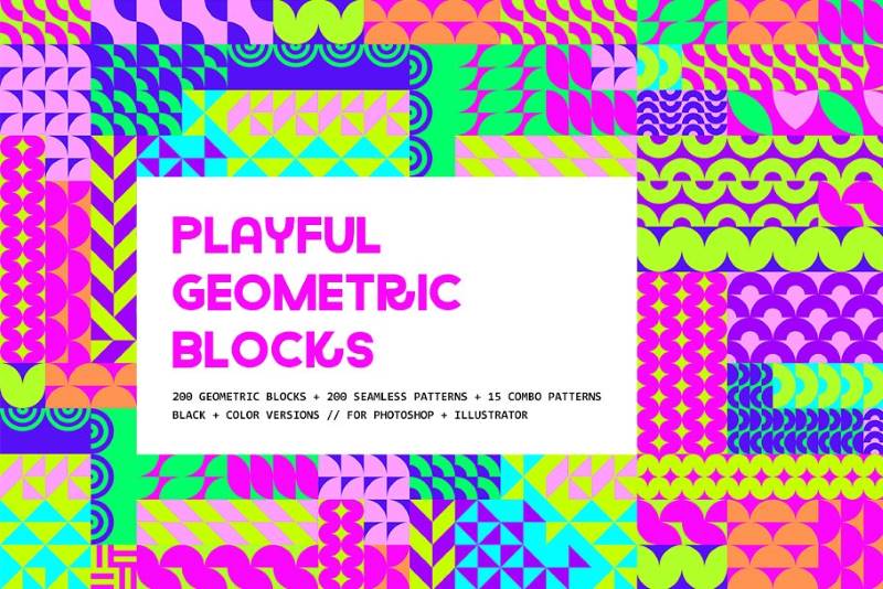 400 Vector Geometric Blocks & Seamless Patterns – Ai, EPS & PSD Files