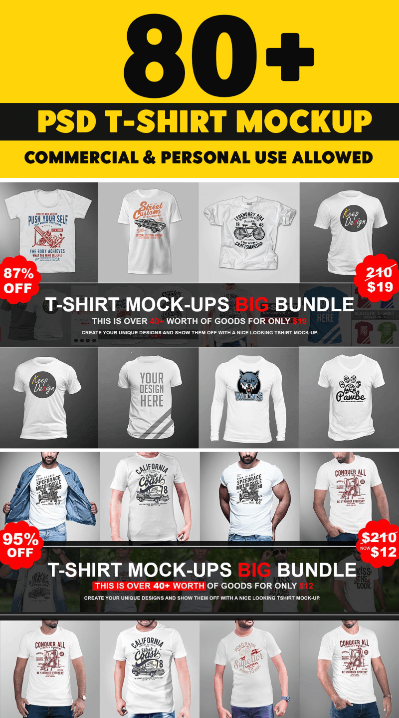 - 5000+ design assets in total: t-shirts, lettering, PS actions, mockups & more