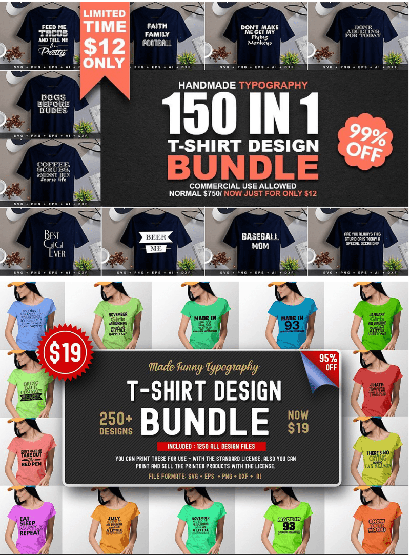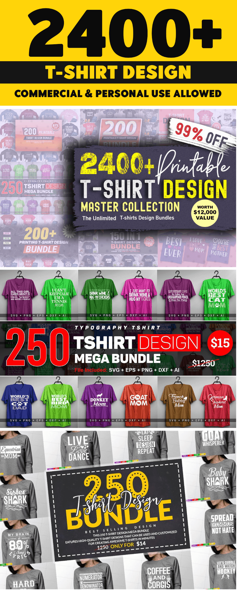 5000+ T-Shirt Designs, PS Actions & Typographic Clipart Pack – Ai, EPS, DFX, PSD & SVG Formats