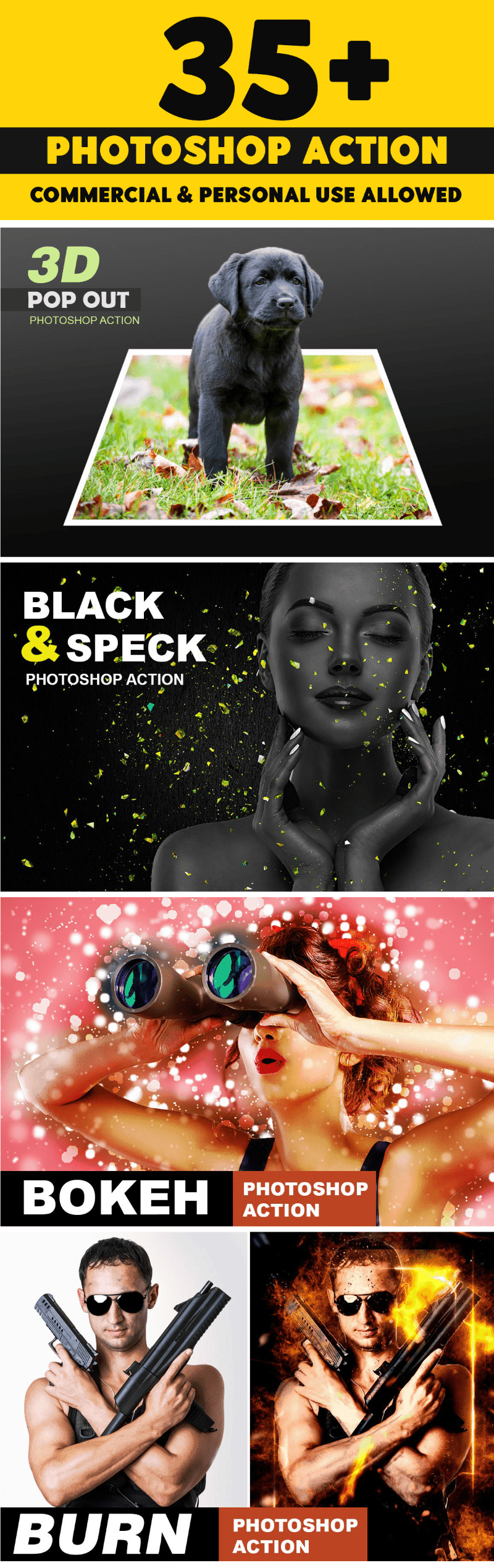 The assets are delivered in separate folders by category, and you’ll find fully editable designs in Ai, SVG, EPS & DFX formats as well as print ready transparent PNG versions, t-shirt mockups for Adobe Photoshop with easy smart object design placement to showcase your content, Photoshop Actions with amazing effects and non-destructive processes to create stunning images, and thousands of typographic compositions & clipart illustrations for both print & digital media