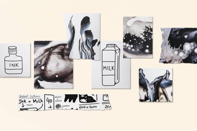 - Shapes, hand designs, abstract landscapes, ink stains, textures & more
