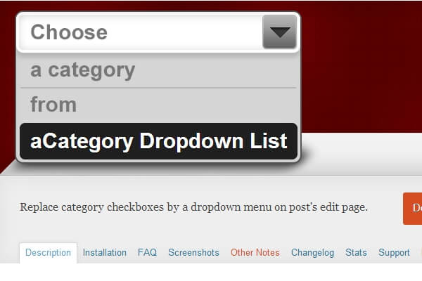 Replaces the category checkboxes by a dropdown menu on post’s edit page. Your posts will only show in the category you select and you will be able to select only one term (category) per post.