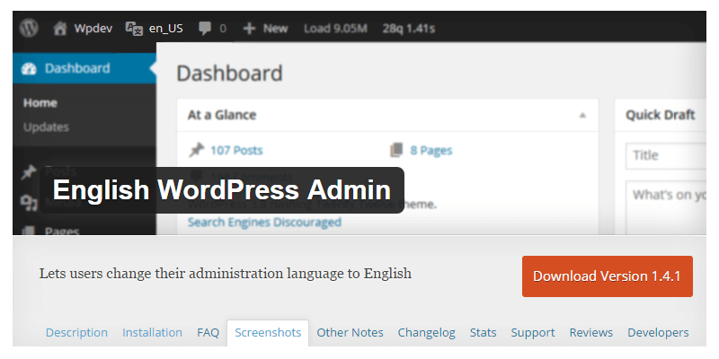 A plugin for changing the language to English in which the information is displayed in the admin area, being especially useful while developing, even if the rest of the site is in another language.
