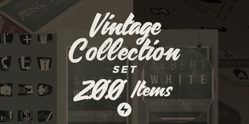 This pack is a compelling collection of 200 editable vector items in a vintage style made in Adobe Illustrator. The pack includes 10 business cards, 90 hipster logos, 30 vintage palettes and 20 textures (paper and halftone).