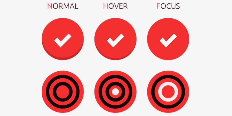 A set of buttons that are useful to represent three familiar anchor link states: normal, hover and focus. The buttons come in a layered PSD file that allows you to change colors and shapes instantly. You can use these buttons in your website design, print design and more.