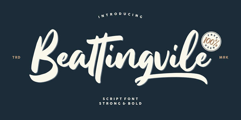 Beattingvile is a beautiful new script font with stylistic alternates, swashes, ligatures and is multilingual. This font is great for branding, label design, logotype, quotes, posters, apparel and much more! Designed by Risman Ginarwan for Graphic Design Freebies, free for both commercial and personal use.