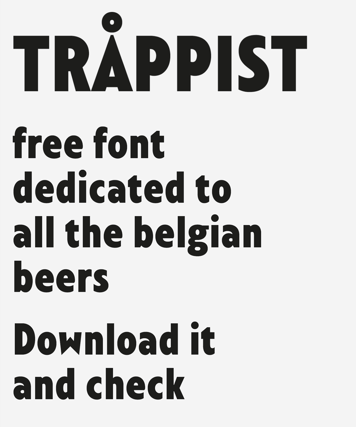 Trappist is a bold-style font inspired in the Belgian beer culture. This font, created by Vika Usmanova is delivered as OTF, TTF, EOT, WOFF & WOFF2 font file formats.