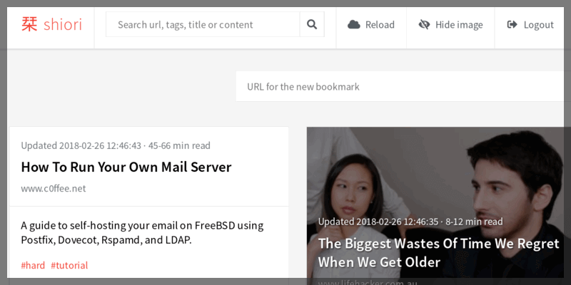 Shiori is a simple bookmark manager built with Go, intended as a simpler version of Pocket. You can use it as a command line application or as a web application. This application is distributed as a single binary, which means it can be installed and used easily. Features a simple and clean command line interface., basic bookmarks management i.e. add, edit and delete, search bookmarks by their title, tags, url and page content, import and export bookmarks from and to Netscape Bookmark file, portable, thanks to its single binary format and sqlite3 database, simple web interface for those who don’t want to use a command line app, by default shiori will download a static copy of the webpage in simple text and HTML format where possible, which later can be used as an offline archive for that page.