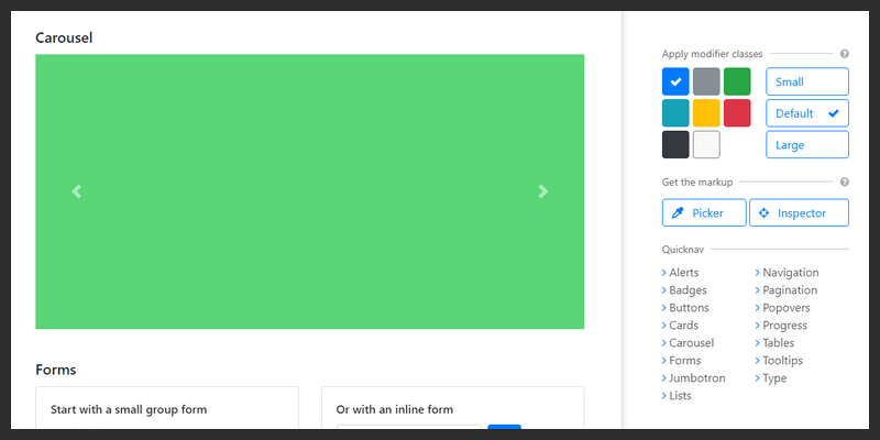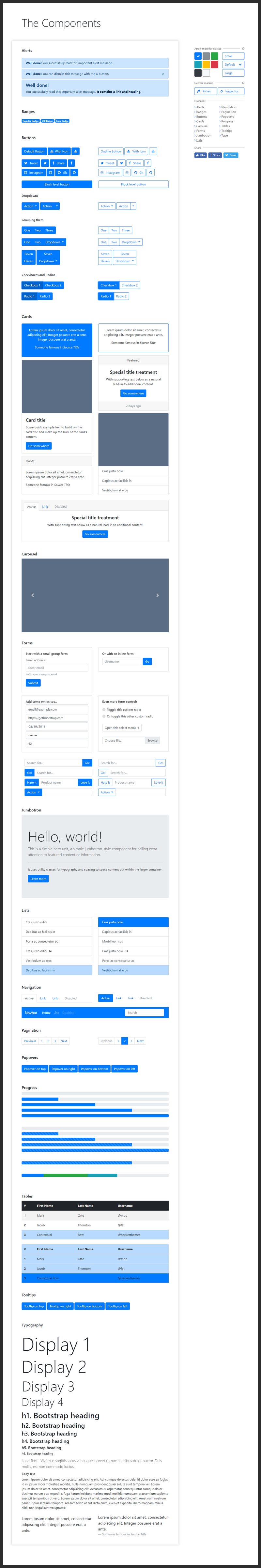 Bootstrap 4 Buffet, a selection of Bootstrap 4 components with an easy to use code picker and code inspector. Created by Alexander Rechsteiner, it features a selection of some of the most important UI components for building great interfaces. Includes Font Awesome icons.