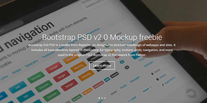 Create quick website or app mockups with this complete set of UI elements brought to us by RepixDesign. This project includes all the basic elements for buttons, grids, typography, navigation and other aspects just as they appear in the Twitter Bootstrap V2 framework. Free for commercial and personal use.
